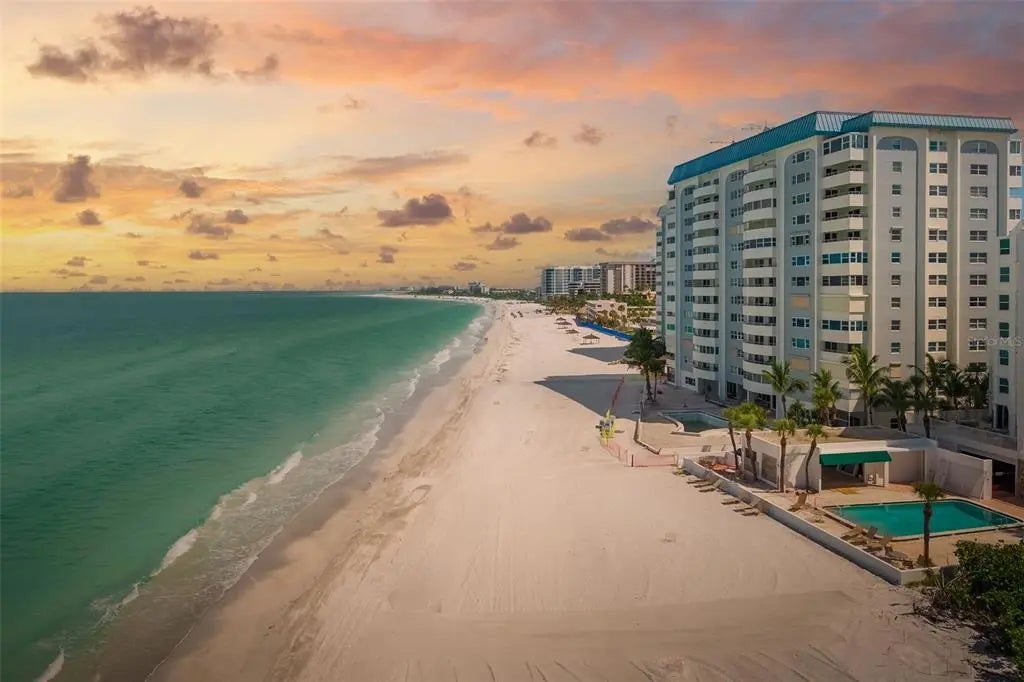 A striking horizon awaits you at this quaint, two bed/two bath home on the second floor of Lido Harbour Towers. Find yourself immersed in the best of Florida gulf coast living. To your west is endless, sparkling waters gently lapping onto powdery white sand beaches. To your east is the incomparable Ted Sperling Nature Preserve where wildlife is the entertainment as you kayak through mangrove forests or walk the trails. To your south is South Lido Key Beach Park, the breathtaking southern tip of Lido Key. And to your north is the upscale, bustling St Armand’s circle brimming with eclectic dining, high end shopping and vibrant culture! Live your quintessential Florida lifestyle in this charming, clean and coastal home. The bright, white kitchen offers loads of storage, ample counterspace and a walk-in pantry! The open concept living area is a comfortable space while the lanai is an amazing perch to watch palm trees gently swaying and framing your view of the water. Open your sliders, which are impact rated for peace of mind, to catch a cool salty breeze with your morning coffee or to watch the sky transform to mesmerizing colors with your evening spirits. Retire to your primary suite to rest and recharge for your next day of Florida adventures. The additional bedroom will accommodate your beach seeking guests, who will also enjoy the convenience of their own full bath. Enjoy community amenities including the beach front pool, community clubhouse with a full kitchen and outdoor grill. Your island life is stress free with secured entry, assigned covered parking, and a convenient storage locker just outside your front door. Whether you are seeking lazy days at the beach or vibrant, entertainment filled evenings at St Armands circle or downtown Sarasota, why not have it all? This unique opportunity is the perfect location for the seasonal gulf coast dweller or the full time resident!