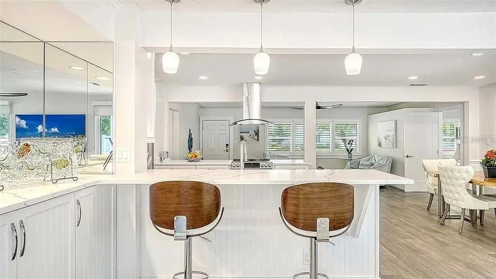 Modern luxury meets Florida beach house style in this impeccably renovated residence, located in the highly sought-after “West of the Trail” enclave — just minutes from Siesta Key’s world-renowned beaches and Downtown Sarasota’s cultural district. This designer 3-bedroom, 2-bath home offers nearly 1,900 square feet of refined interior space, thoughtfully reimagined for both elegant living and effortless entertaining. Clean lines, curated finishes, and a sunlit open layout set the tone throughout — blending coastal ease with upscale detail. Step outside and discover your own private resort-style oasis, featuring a sparkling pool, ambient lighting, and multiple lounging and dining areas — all surrounded by maintenance-free landscaping for year-round enjoyment. An EV charging station adds modern convenience, and there’s no HOA to limit your lifestyle or income strategy. Currently operated as a successful Airbnb by a 5-star Superhost, this home offers outstanding flexibility for the right buyer — whether as a seasonal retreat, full-time residence, or high-end rental investment. A rare offering in one of Sarasota's most desirable neighborhoods — polished, private, and prepared for its next chapter.
