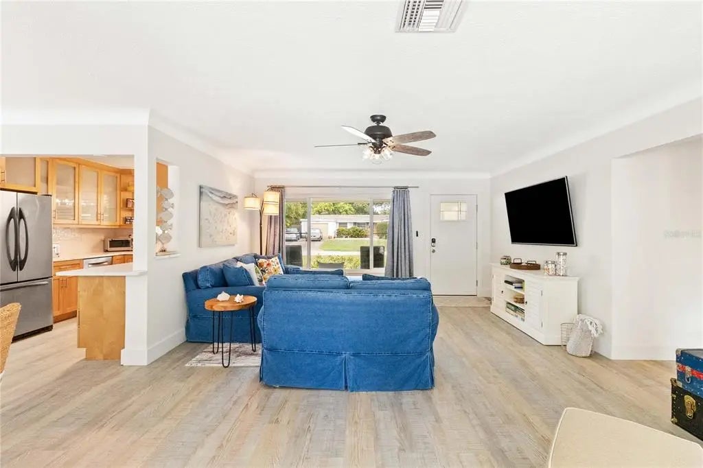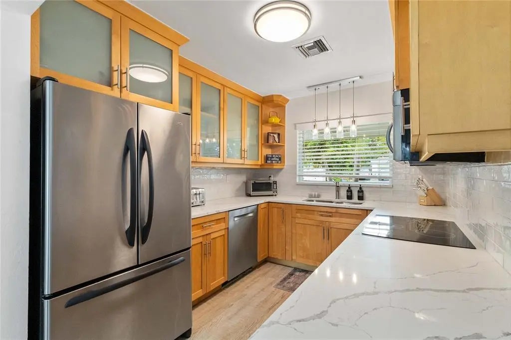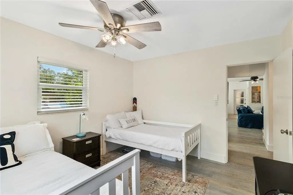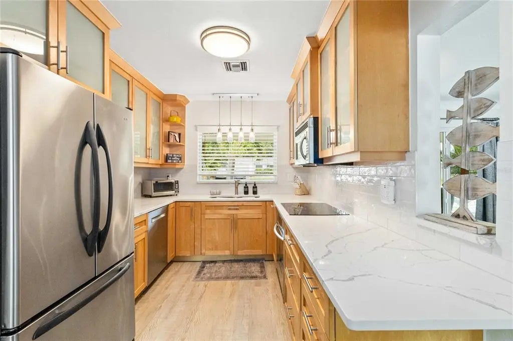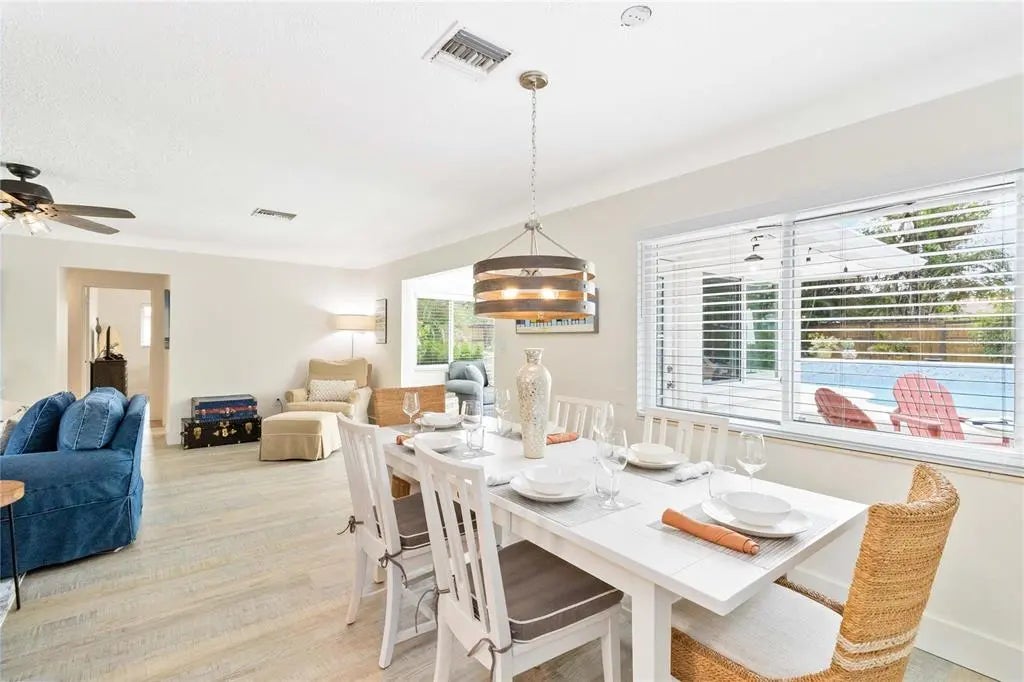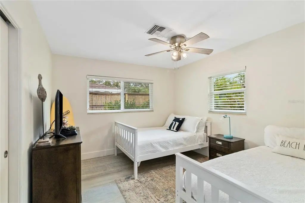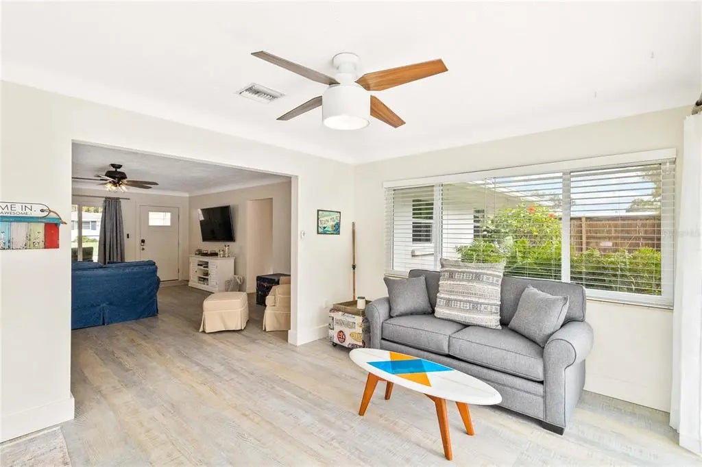 NEW ROOF & HURRICANE WINDOWS. This Southside area home is completely move-in ready and boasts significant updates throughout. Situated on a large, private, fenced lot, offering wonderful outdoor space complete with a heated "Resort Style" Saltwater Pool and Patio; Perfect for relaxing and entertaining. This 1436 sf home offers two bedrooms, two full bathrooms, a one-car garage, and a separate family room that provides tropical views of the landscaped pool area. The backyard has room for an additional Master Suite or Accessory Dwelling Unit. The updates are extensive and include a new roof, HVAC system, hurricane impact doors, windows, & garage door ensuring peace of mind. The primary bathroom and kitchen have been beautifully updated with quartz countertops and glass front cabinets, a new range, dishwasher, and water heater. You'll also appreciate the premium vinyl wood plank flooring throughout, the recently painted interior and exterior, new spray foam insulation, new PEX plumbing to all fixtures, and professional outdoor drainage. Manufacturers warranty & extended home warranty are transferable or included. The 10x14 air-conditioned laundry room and additional flex/office space is a bonus feature not to miss. For those seeking an investment opportunity, this home has a proven $30K + short-term rental history when the owner was not in town. It's located in the highly desirable heart of Sarasota, offering an easy drive to Siesta Key Beach, biking on The Legacy Trail, Arlington Park, and Downtown Sarasota's restaurants and Main Street stores. Best of all, there are no CDD or HOA fees.