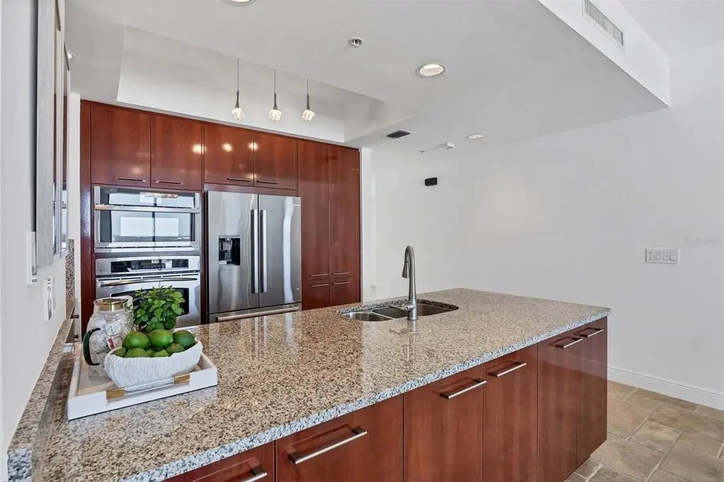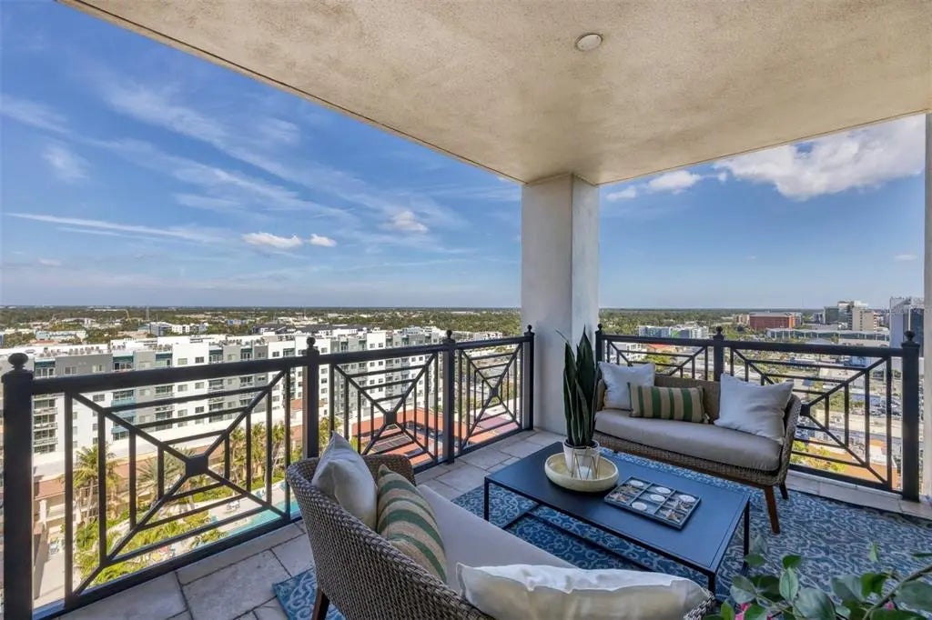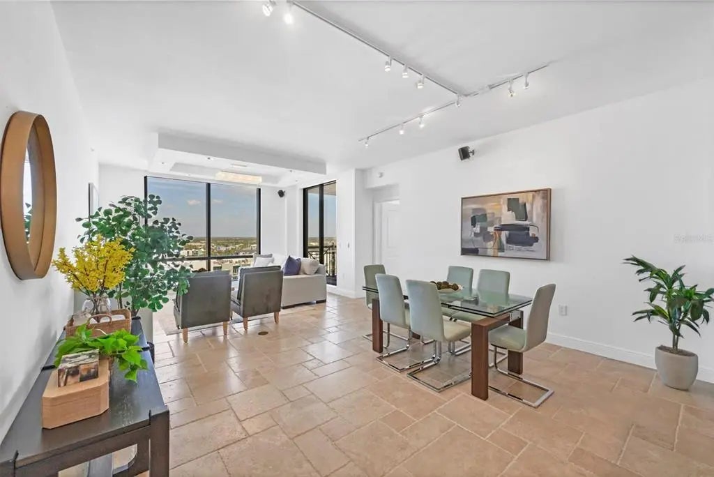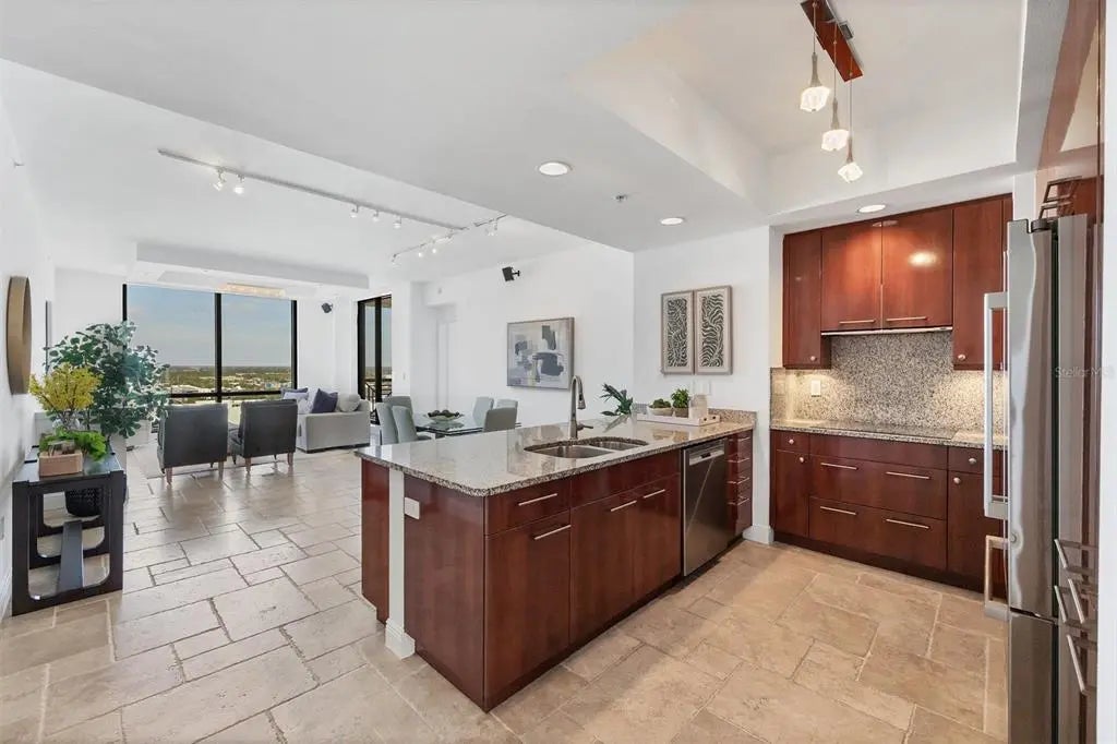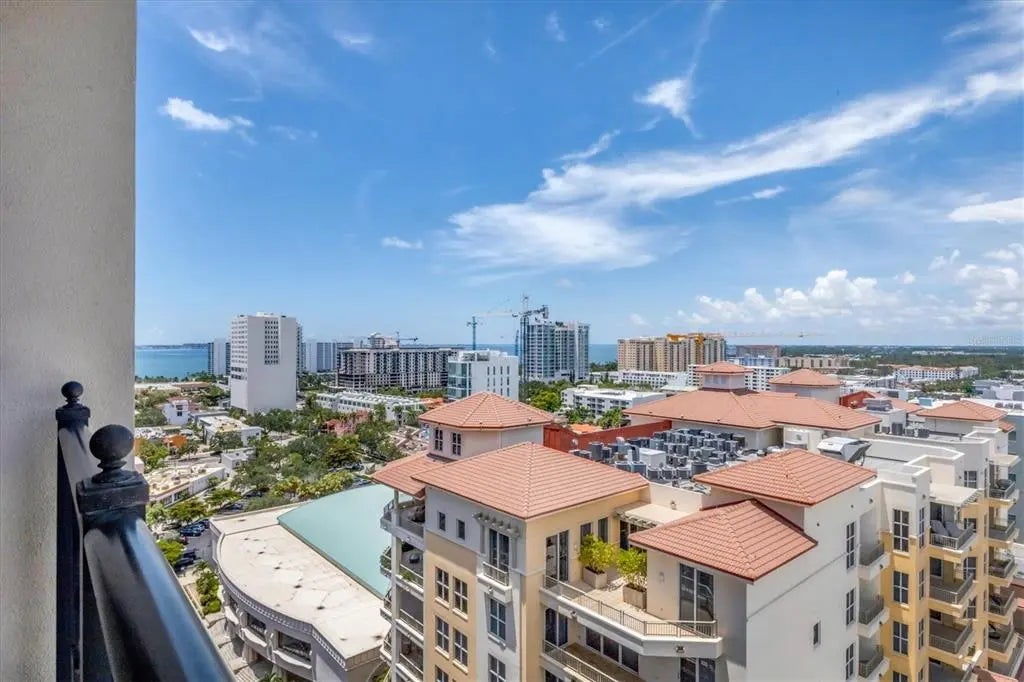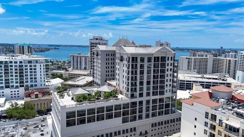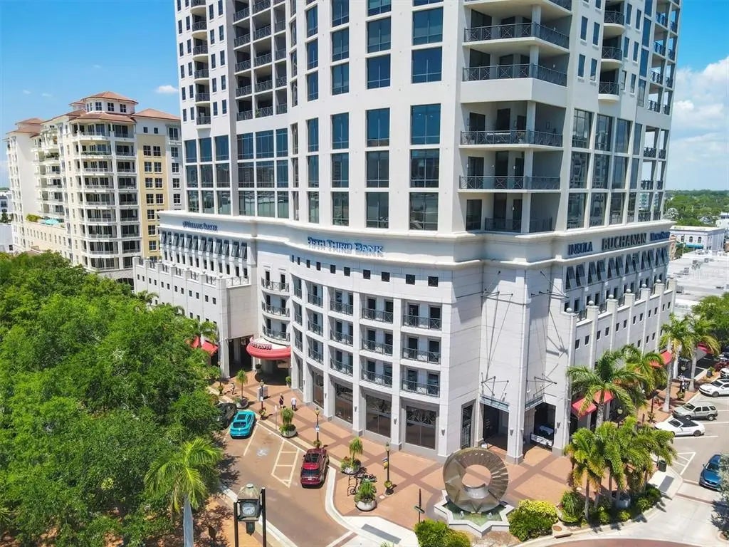 Experience the best of downtown Sarasota living at The Plaza at Five Points. This 15th-floor corner residence is filled with natural light and windows in every room and captures the essence of city-meets-coast luxury, surrounded by acclaimed dining, boutique shopping, and the waterfront just steps away. Elevated on the 15th floor, the home offers long-range city views and noticeably reduced street noise for a more serene living experience. With only 49 private residences in the entire building, The Plaza offers an intimate, boutique living environment rarely found in downtown high-rises. Fewer units mean greater privacy, quicker elevators, and a more refined, quiet residential experience while still enjoying the conveniences of a full-service tower. Inside, upgraded tile flooring and upgraded ceiling accent lighting enhance the home’s refined aesthetic, while the open split layout creates effortless flow. The modern kitchen is designed for both style and function, featuring an induction cooktop, a brand-new wall convection oven, abundant cabinetry, and dual large wine coolers—perfect for the avid entertainer or wine enthusiast. The serene primary suite offers generous closet space, complemented by a versatile guest suite ideal for an office or private retreat. Additional conveniences include two deeded parking spaces, private storage, and valet service. Residents of The Plaza enjoy exceptional amenities, including a resort-style pool deck, fitness center, club room, and expansive guest parking—an uncommon luxury in the heart of downtown. The building also features its own in-house property management team, providing dedicated security and concierge services that elevate day-to-day living. Perfectly positioned in Sarasota’s vibrant cultural hub, this residence offers unmatched walkability, with Whole Foods and Starbucks located directly across the street—making every day errands refreshingly effortless. Sophisticated, convenient, and beautifully appointed, this home exemplifies elevated living in the heart of downtown Sarasota.