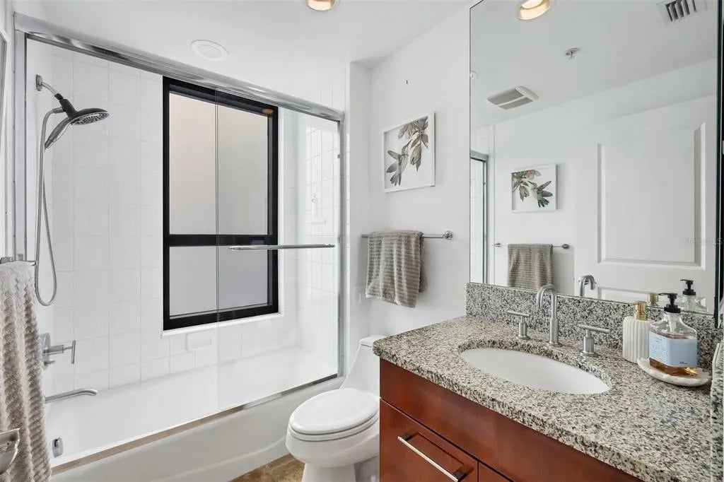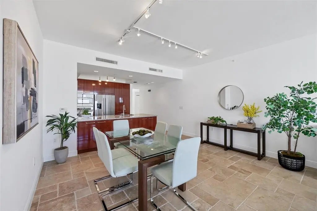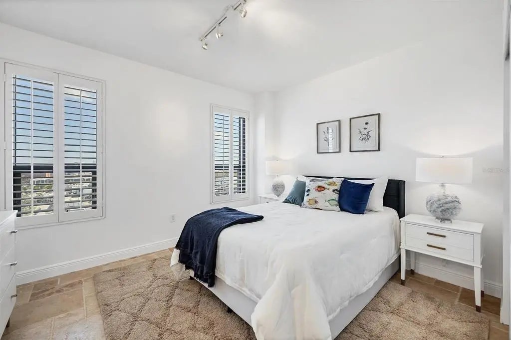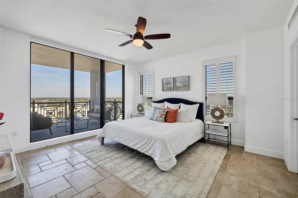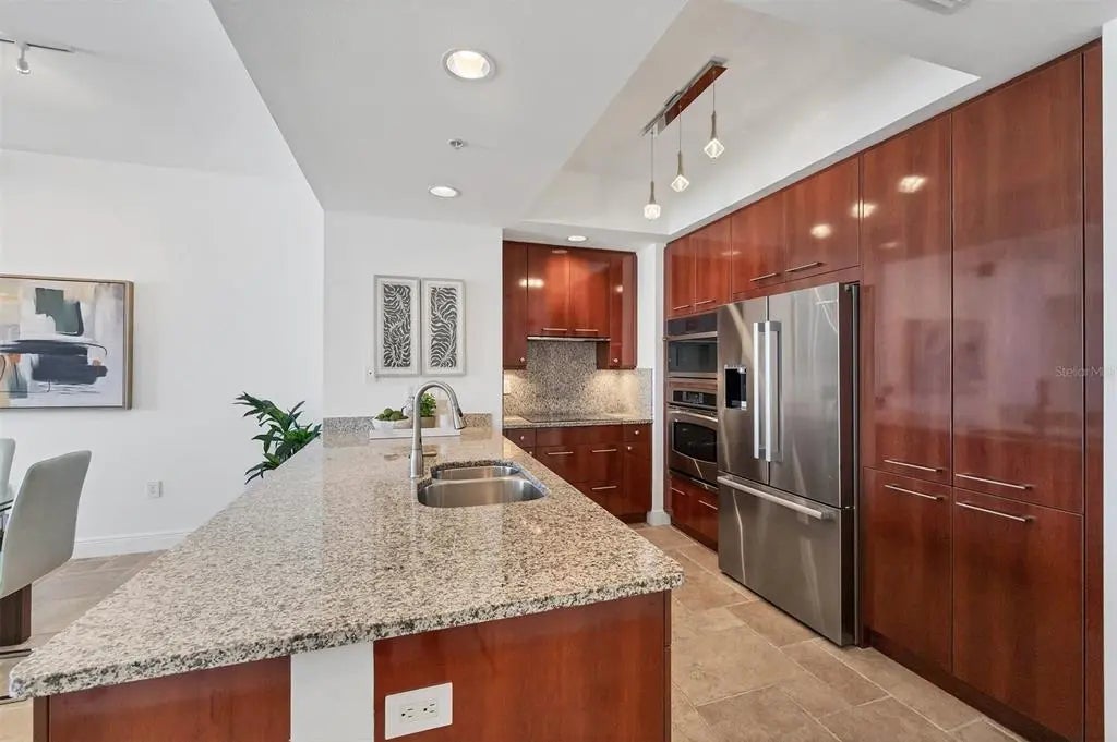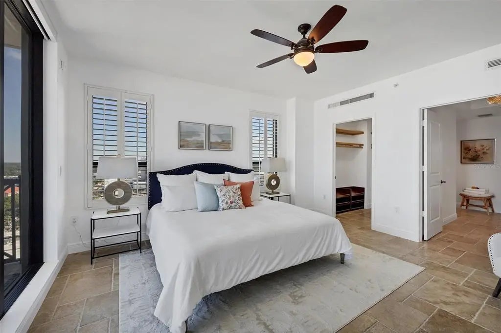 Experience the best of downtown Sarasota living at The Plaza at Five Points. This 15th-floor corner residence is filled with natural light and windows in every room and captures the essence of city-meets-coast luxury, surrounded by acclaimed dining, boutique shopping, and the waterfront just steps away. Elevated on the 15th floor, the home offers long-range city views and noticeably reduced street noise for a more serene living experience. With only 49 private residences in the entire building, The Plaza offers an intimate, boutique living environment rarely found in downtown high-rises. Fewer units mean greater privacy, quicker elevators, and a more refined, quiet residential experience while still enjoying the conveniences of a full-service tower. Inside, upgraded tile flooring and upgraded ceiling accent lighting enhance the home’s refined aesthetic, while the open split layout creates effortless flow. The modern kitchen is designed for both style and function, featuring an induction cooktop, a brand-new wall convection oven, abundant cabinetry, and dual large wine coolers—perfect for the avid entertainer or wine enthusiast. The serene primary suite offers generous closet space, complemented by a versatile guest suite ideal for an office or private retreat. Additional conveniences include two deeded parking spaces, private storage, and valet service. Residents of The Plaza enjoy exceptional amenities, including a resort-style pool deck, fitness center, club room, and expansive guest parking—an uncommon luxury in the heart of downtown. The building also features its own in-house property management team, providing dedicated security and concierge services that elevate day-to-day living. Perfectly positioned in Sarasota’s vibrant cultural hub, this residence offers unmatched walkability, with Whole Foods and Starbucks located directly across the street—making every day errands refreshingly effortless. Sophisticated, convenient, and beautifully appointed, this home exemplifies elevated living in the heart of downtown Sarasota.