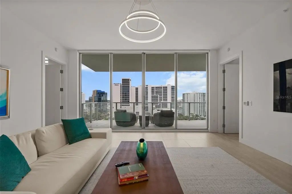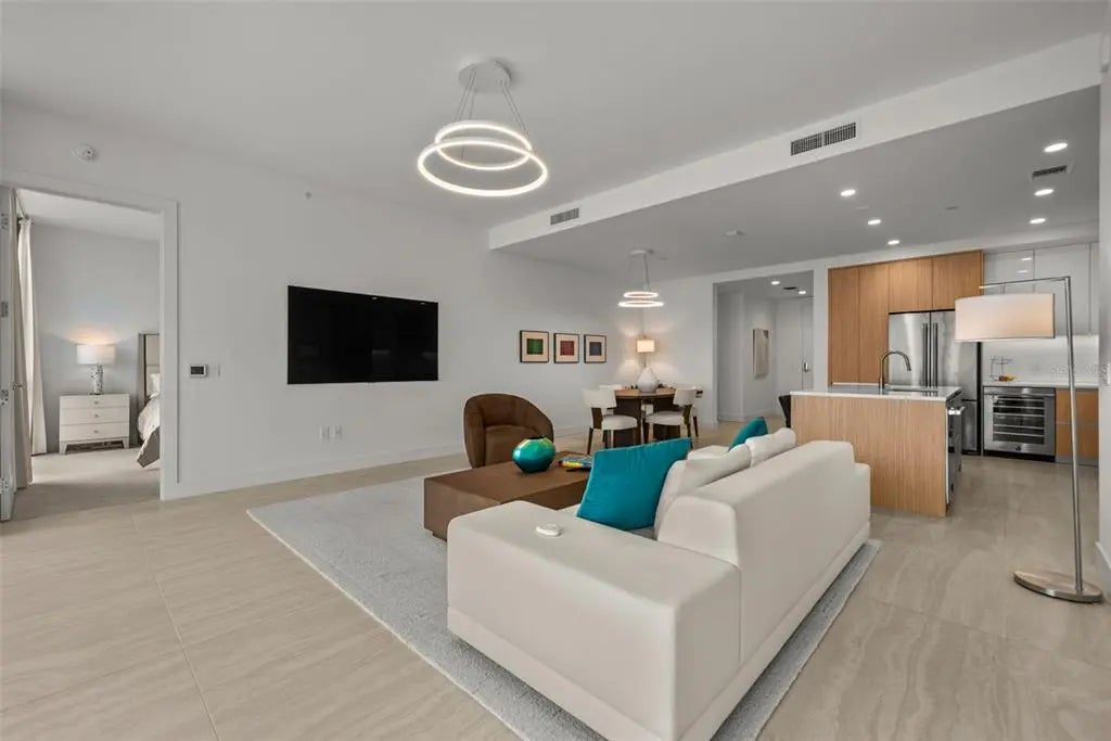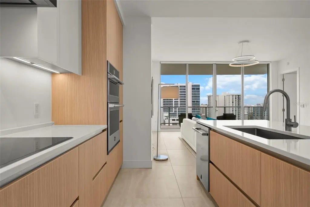 Price Reduced! Welcome to refined coastal living in the heart of Downtown Sarasotaâs vibrant Waterfront District. VIEW VIDEO HERE: https://motion-media-llc.aryeo.com/videos/019880d0-6c72-708c-ac5e-aaaed3208fa6?v=145. THIS impeccably designed residence at BAYSO offers approximately 1,606 square feet of thoughtfully curated living space, featuring 2 bedrooms, 2.5 bathrooms, a versatile den, and a private terrace with captivating peek-a-boo views of Sarasota Bay and the Gulf of Mexico. THE chefâs kitchen is a true showpiece, showcasing sleek European cabinetry by Italkraft with upgraded soft-close drawers, premium stainless steel Jenn-Air appliancesâincluding an induction cooktopâand an upgraded wine/beverage cooler to ensure guests are always well cared for. One of the few BAYSO floor plans with a side-facing island, this layout offers both functionality and a distinctive edge. THE spacious primary suite is a serene retreat, offering a walk-in closet, spa-inspired ensuite bathroom with dual vanities, and a sliding privacy door for a clean, modern finish. The guest suite features its own ensuite bath and built-in closet, ensuring comfort and privacy for visitors. A well-positioned laundry room near the entryway allows for seamless cleanup after a beach day or workout. THE den provides exceptional flexibilityâideal as a private gym, yoga studio, home office, or additional sleeping spaceâwith a nearby powder room for added convenience. FURNISHINGS are available separately, offering a turnkey opportunity for those seeking a move-in-ready residence with timeless style. BAYSO's luxury amenities further elevate the lifestyle. On the ground level, the spacious and stylish Club Room features a catering kitchen and serves as an inviting space to entertain, especially in the evenings with the vibrant city lights as your backdrop. The state-of-the-art fitness center continues to receive rave reviews from residents and prospective buyers alike. For work-related needs, a unique office area provides privacy for one-on-one meetings and a conference room for larger gatherings. THE fifth level brings a true resort-style experience with a sparkling saltwater pool, spa, chaise lounges, umbrellas, two outdoor gas grills, and even a dedicated dog park complete with a pet washing stationâperfect for your furry companions. LIVE moments from Sarasota Bay, The Bay Park, world-class dining, arts venues, and luxury retailâall part of the ever-evolving Quay Sarasota. Discover a residence that blends comfort, design, and lifestyle at the highest level. SCHEDULE your private showing today and begin your Florida dream life.