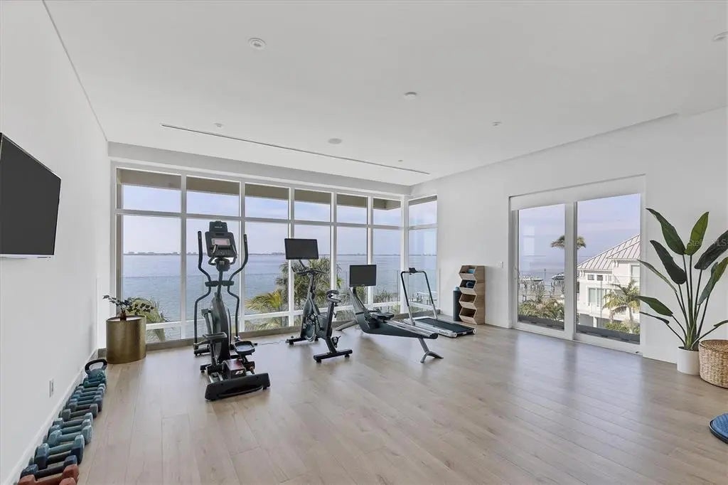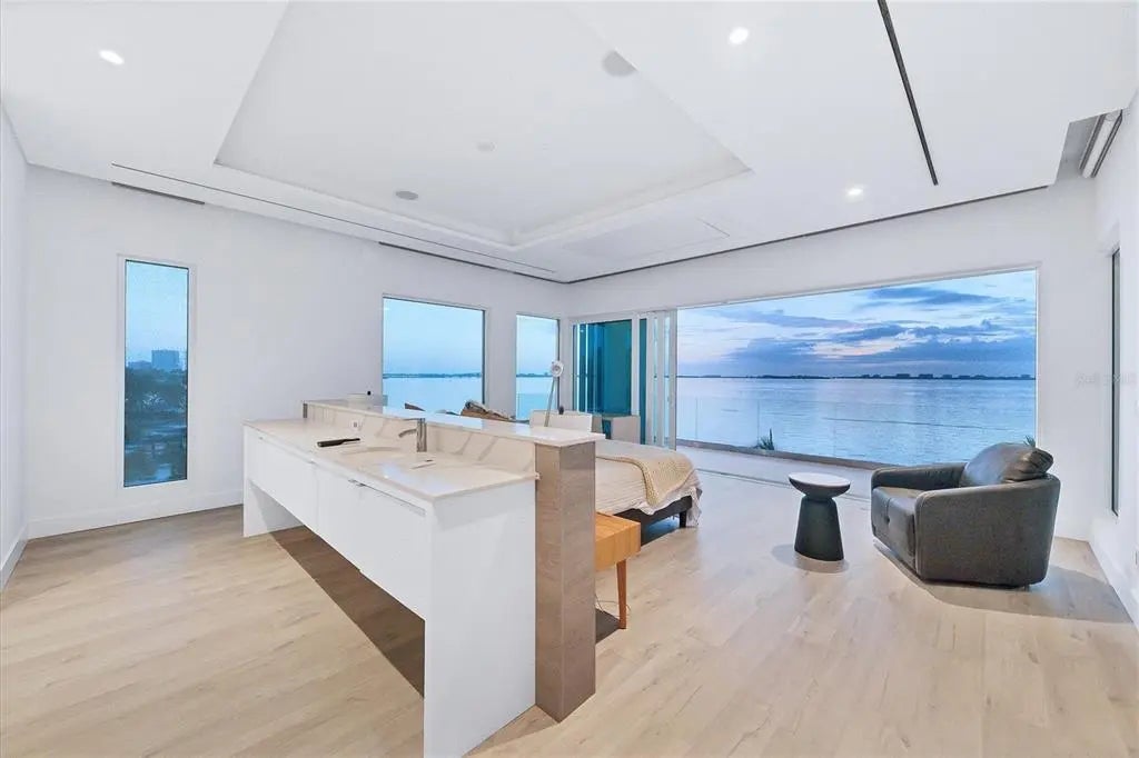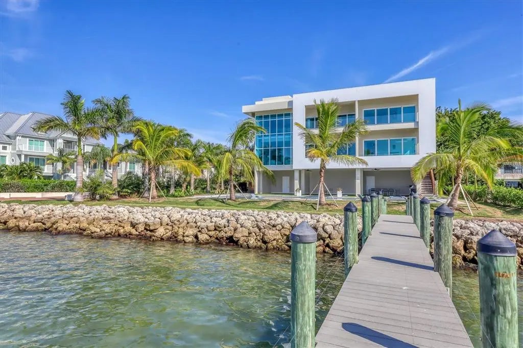 WATERFRONT MODERN ESTATE | DEEP WATER DOCK | ONE MILE FROM DOWNTOWN SARASOTA. Welcome to one of Sarasota’s most desirable waterfront addresses. Built in 2017 to the highest structural standards, this modern estate was engineered to endure Florida’s toughest hurricanes — set on 75 reinforced concrete piles with solid concrete exterior walls, slabs, and roof, and impact-rated glass throughout. Located within an exclusive gated community just one mile from downtown, the property enjoys direct views of Sarasota Bay, the Ringling Bridge, and the city skyline. Steps away lies The Bay Park, a new world-class 53-acre waterfront park and nature preserve featuring scenic walking trails, kayak launches through the tranquil mangroves, open-air events, and year-round recreation. Enjoy boating from your private deep-water dock equipped with a 13,000 lb lift, or relax by the resort-style pool featuring a 12-person spa and expansive sunshelf surrounded by lush tropical landscaping. Inside, every detail reflects European refinement and contemporary luxury: Italian interior doors, a German top-of-the-line kitchen, and porcelain tile imported from Spain create an ambiance of elegance and sophistication. Additional highlights include a smart home automation system, a private elevator serving all floors including the rooftop level, and panoramic bay views from nearly every room. With The Bay Project, Downtown Sarasota, Bayfront Park, and the Ringling Bridge all just moments away, this residence perfectly blends architectural excellence, modern design, and a premier waterfront lifestyle.