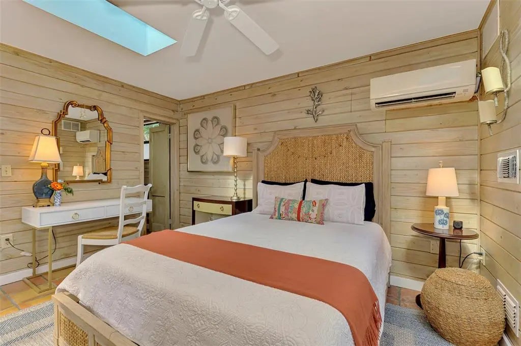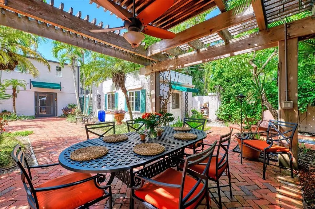 Welcome to Casa de Flores, a one-of-a-kind, Spanish Revival estate nestled in the coveted, west of the trail, Granada neighborhood. Built in the 1920s, this beautifully restored residence includes a main home with two bedrooms and two baths, plus two separate guest cottages. The pool house cottage offers two-story living with a private balcony overlooking the pool courtyard, evoking the charm of a secluded European inn—perfect for quiet mornings or relaxing evenings. The first level features a bedroom, and convenient laundry access. Upstairs, a bedroom and a full-service kitchen with dining area. The second guest cottage includes a bedroom, full bath, kitchenette, and a comfortable sitting area with views of the courtyard. These detached spaces are ideal for hosting in-laws, college or guests, and also work beautifully as a private home office, art studio, or creative retreat. At the heart of the main house is a thoughtfully updated chef’s kitchen with a 6-burner Dacor gas stove, double ovens, Sub-Zero refrigerator, and beautiful tile accents—designed to inspire culinary creativity. The home also offers a formal dining room, a comfortable family room, and a welcoming front living room. The primary bedroom is large enough for a king-sized bed, includes a walk-in closet, and has a separate sitting area or reading nook, currently adorned with a daybed. Architectural details such as a hand-carved wood door, a charming clawfoot bathtub, original parquet and tile floors, arched doorways, textured plaster walls, and built-in bookcases all contribute to the home’s Spanish Mediterranean character, blending old-world warmth with modern comfort. Outdoors, a charming front patio sets the tone for relaxed Florida living, while the private walled courtyard is a resort-like retreat with a heated pool and spa, lush tropical landscaping, and a trellis ideal for shaded dining. Ample parking ensures effortless hosting for family and friends. Roofs were replaced in 2021, and additional features such as a whole-house generator and hurricane shutters provide peace of mind for year-round living or seasonal enjoyment. Whether you envision a forever home, multi-generational compound, flexible live/work setup, or a high-performing Airbnb, Casa de Flores offers unmatched character and lifestyle versatility. With its prime location just minutes from world-renowned Siesta Key Beach and the charming boutiques and dining spots of Southside Village, you’ll enjoy the best of Sarasota’s coastal living. Experience the magic for yourself—take a personal tour today by enjoying the walk-through video - https://vimeo.com/1110461692