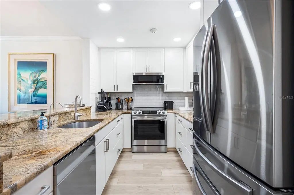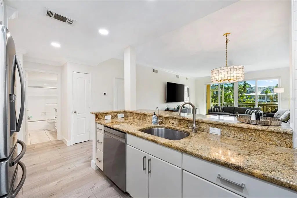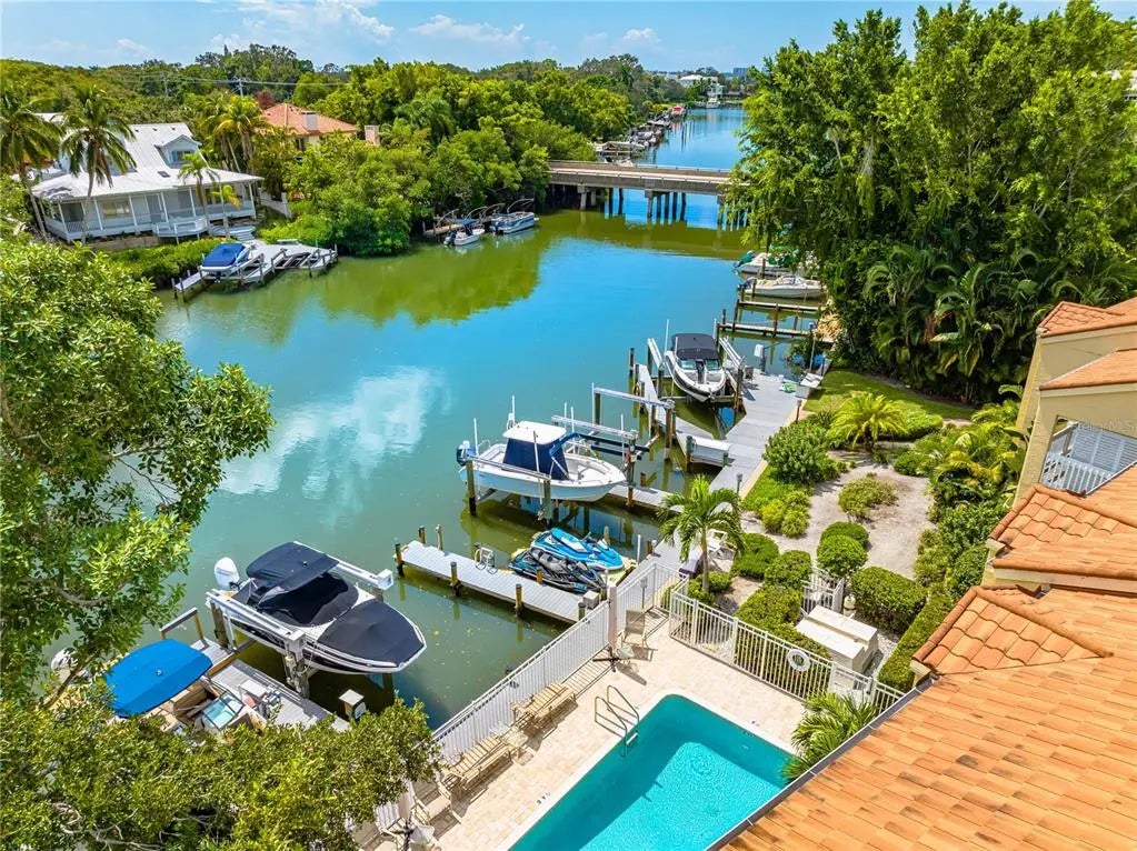 Experience living on the water with your deeded dock. Boat size up to 27ft. Waterfront fully furnished ground-floor condo in Hudson Landings. This rare west-of-the-trail unit features 3 bedrooms, 2 bathrooms, and a deeded dock, offering direct access to Sarasota Bay and the Gulf of Mexico. Enjoy serene water views from the open patio, where you can start your morning with coffee or unwind at the end of the day. Key features include high ceilings, hurricane windows/ sliders, granite countertops, a breakfast bar, tile flooring, and stainless steel appliances. The spacious master bedroom and patio both overlook the canal, allowing you to keep an eye on your boat. This southern-facing condo is bathed in natural light and offers a seamless blend of style and functionality. Hudson Landings is a community of just 12 residences, perfectly situated in a private, peaceful location near downtown Sarasota, Selby Gardens, and the Marina. With a heated community pool and a lifestyle tailored for water enthusiasts, this is an incredible opportunity to live downtown while enjoying the tranquility of waterfront living.