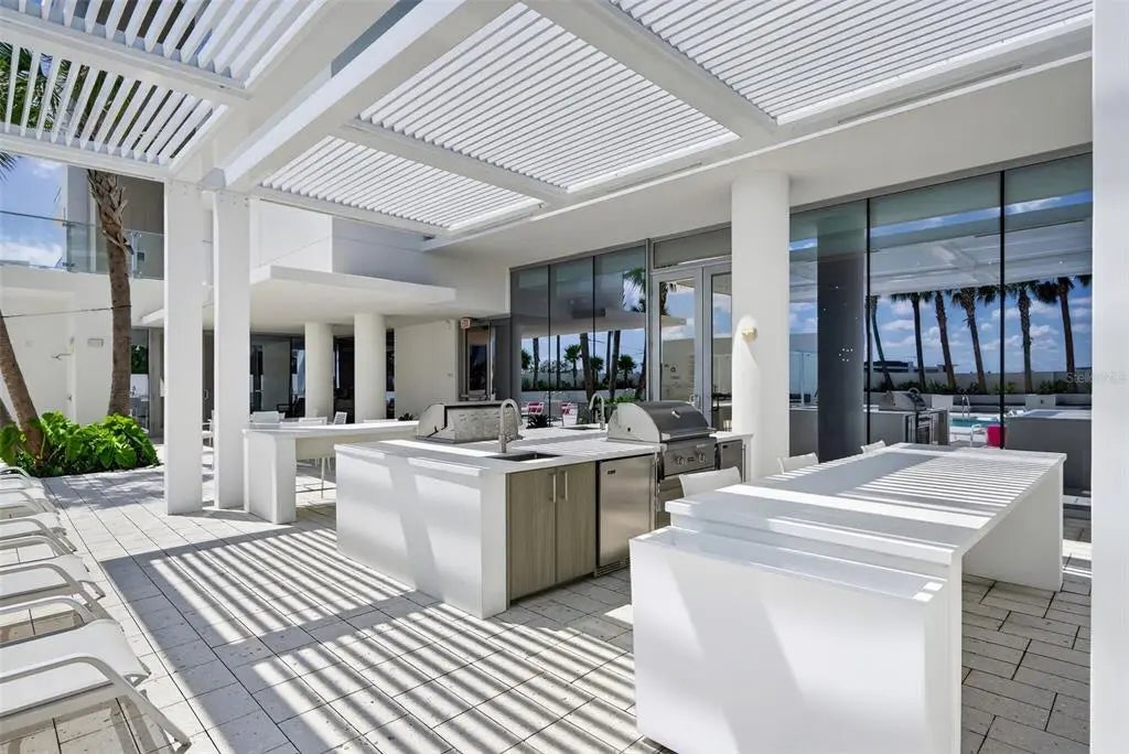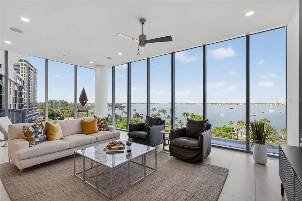 If you’re looking for a downtown condominium with unparalleled views of the Bay and City lights, framed by the drama of a panoramic southwest corner, look no further than this exceptional EPOCH residence in Sarasota’s most desirable walkable neighborhood. Arrive via your private elevator foyer and be greeted by walls of glass showcasing sweeping vistas from Marina Jack to Big Pass and the Gulf beyond. Spanning 3,600 air-conditioned square feet, this coastal contemporary home blends sophisticated style, smart technology, and exceptional comfort. Soaring ceilings and an open floor plan enhance the grand scale of the great room, dining area, and expansive terraces, creating seamless spaces for both intimate living and large-scale entertaining. The gourmet kitchen is a true centerpiece, with a large island, bespoke Cucine Ricci Italian cabinetry, quartz countertops, and ultra-premium Gaggenau appliances including a six-burner gas range, double ovens, side-by-side refrigerator/freezer, and wine refrigerator. Access to the terrace with a summer kitchen makes indoor-outdoor living effortless. The owner’s retreat is an unrivaled sanctuary with direct bayfront terrace access, generous custom walk-in closets, and a spa-inspired bath featuring a curbless walk-in shower, sculptural soaking tub, double vanities, and two private water closets. The guest wing includes two en-suite bedrooms and a private den/TV lounge, providing comfort and privacy for family and visitors. Every finish speaks to refined living, from large-format porcelain flooring to Lutron automated shades, smart lighting controls, multi-zone air conditioning, and an oversized laundry room. A private storage space and two secure deeded parking spaces further elevate convenience. At EPOCH, residents enjoy world-class amenities: a 70-foot recreation and lap pool with spa, fire tables, pool bar and grill; a dramatic rooftop terrace; a Residents’ Club; state-of-the-art fitness center; massage suite; steam showers; and a private guest suite for visitors. Meticulously conceived to honor the Sarasota School of Architecture, EPOCH offers just 23 exclusive residences where contemporary elegance and unmatched quality converge. Nestled on the shoreline of Sarasota Bay and steps from downtown’s cosmopolitan core, this is the pinnacle of Gulf Coast living.
