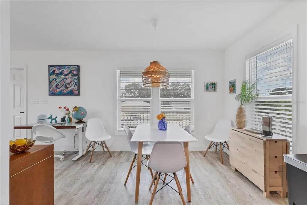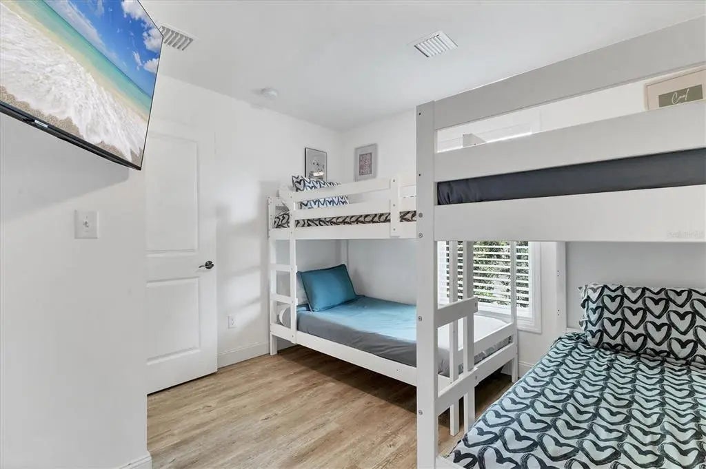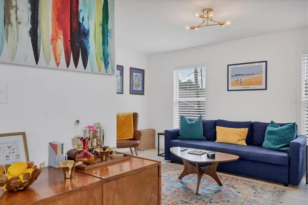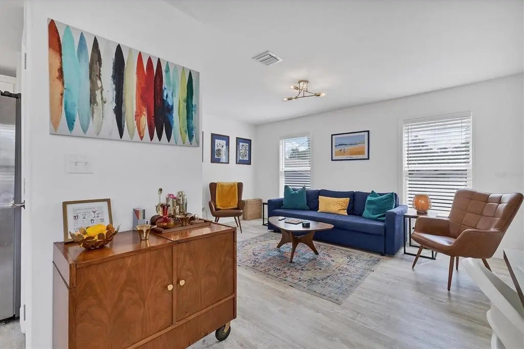 Elevate your lifestyle in this unique island-style home in the heart of Sarasota! An exceptional opportunity to experience the best of Florida living and an effortless move-in with all turnkey furnishings included, allowing you to settle in immediately. The interior is bright, optimized, and beautifully finished with luxury vinyl floors, shaker style cabinets, smooth finish doors, and smart TVs throughout, creating a modern and inviting atmosphere. The spacious living room and alcove with an antique bar cart and desk are adjacent to the dining area and a fully equipped kitchen, featuring elegant stone countertops and "smart" Samsung stainless steel appliances—ideal for entertaining guests or enjoying family meals. For your convenience, the interior laundry area includes a Samsung washer and dryer. This delightful home, built in 2022 to current building codes, ensures peace of mind with optimal construction features including impact windows, durable metal roof, and elevated stilt-on-concrete-piling construction with ample under-building carport style parking for two cars. With three bedrooms and two full baths, it comfortably sleeps eight, making this home perfect for families or groups. Located in a coveted area between vibrant downtown Sarasota and gorgeous Gulf Coast beaches, you can easily walk to Arlington Park and Aquatic Complex, head to Lido Key Beach or world-famous Siesta Key Beach with its quartz crystal sand, or simply relax in the serene, tree-lined backyard. This home is currently used as a part-time vacation home and for weekly vacation rentals. It's ideal as a full-time residence, a convenient part-time vacation home, or for continued weekly rentals, offering flexible ownership options. You will also love the close proximity to Sarasota's vibrant arts and culture scene, diverse dining venues, Sunday Farmers Market, the stunning Sarasota Bayfront and marina, and abundant recreational activities.