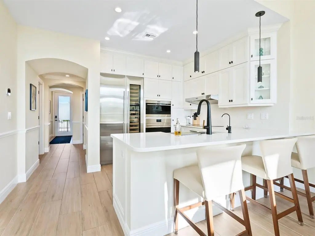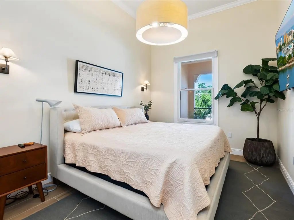 Experience refined Sarasota living at Citrus Residences in the Rosemary District. This turnkey-furnished two-bedroom, two-bath home blends modern elegance with boutique exclusivity. Soaring ceilings, impact windows, and a Romeo and Juliet balcony bathe the interiors in natural light. High-end finishes include wood-look tile floors, quartz countertops, custom cabinetry and sparkling chandeliers. The chef's kitchen is the centerpiece, featuring a Wolf induction cooktop, Sub-Zero refrigeration, and a wine chiller, perfect for hosting with style. Step through a private courtyard entry into your oasis, and enjoy the vibrant, walkable neighborhood, alive with Sarasota's best dining and culture. With two dedicated parking spaces, low HOA fees and Gulf beaches just minutes away, this residence is more than a home, it's a statement of luxury and convenience. Don't miss this opportunity to own a customized, turnkey oasis in one of Sarasota's vibrant neighborhoods!