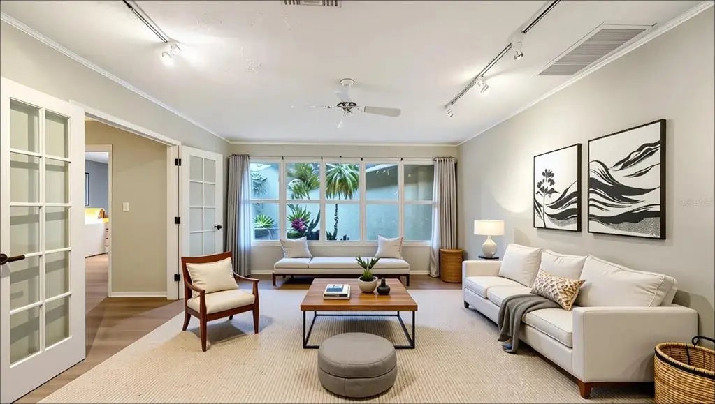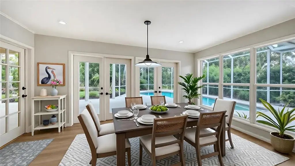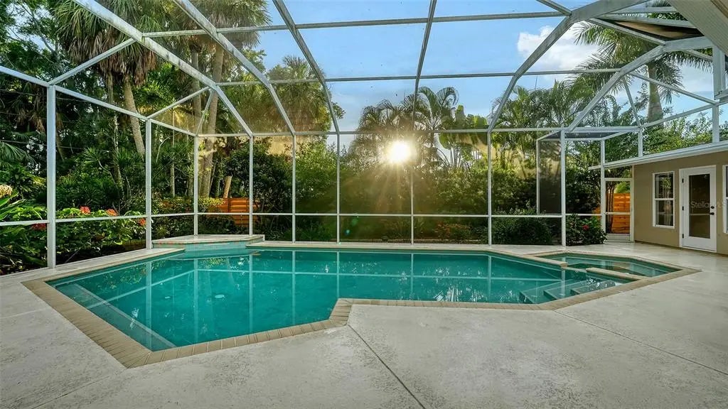 One or more photo(s) has been virtually staged. This expansive 3 bedroom, 3 bathroom home with a heated pool & spa is nestled on a quiet cul-de-sac off Bay Shore Rd in the neighborhood of Indian Beach - Sapphire Shores. This european-style home offers a lot of natural light, a wall of French doors to the stunning lanai with a vaulted tongue-and-groove ceiling, overlooking the beautiful backyard and the heated pool & spa area. A bonus room with its own bath allows multiple use options, family room, home office, gym or another bedroom. Even the garage has been enlarged and offers space for a workshop and/or up to 2-3 cars. The roof was just replaced in 2025, the flooring is brand new and the primary bath is updated as well. Overall a well maintained property with a great curb appeal. Enjoy the lifestyle of this area with easy access to downtown Sarasota, dining, shopping and waterfront activities. Just 1 mile south of the Ringling Museum.