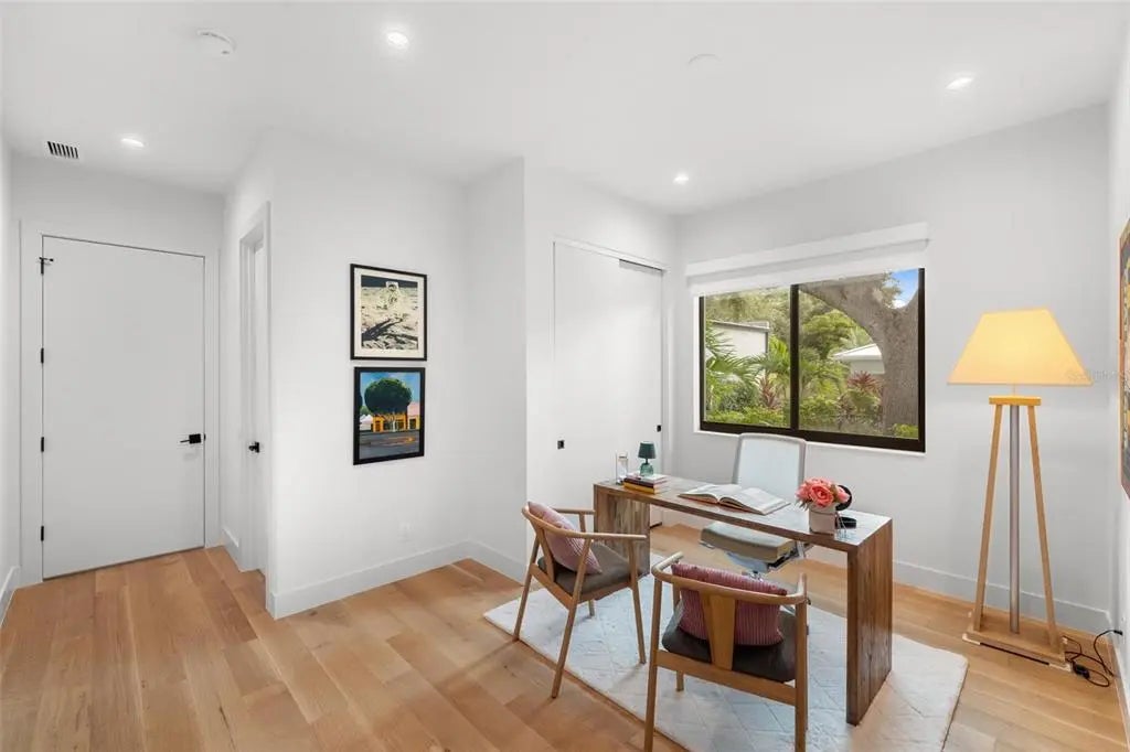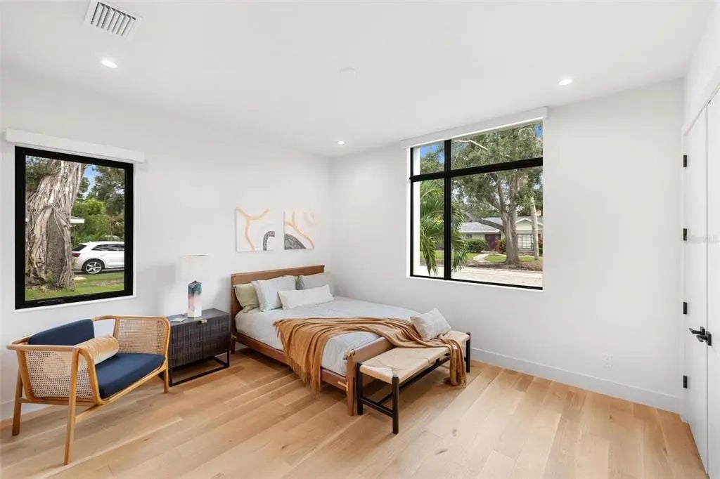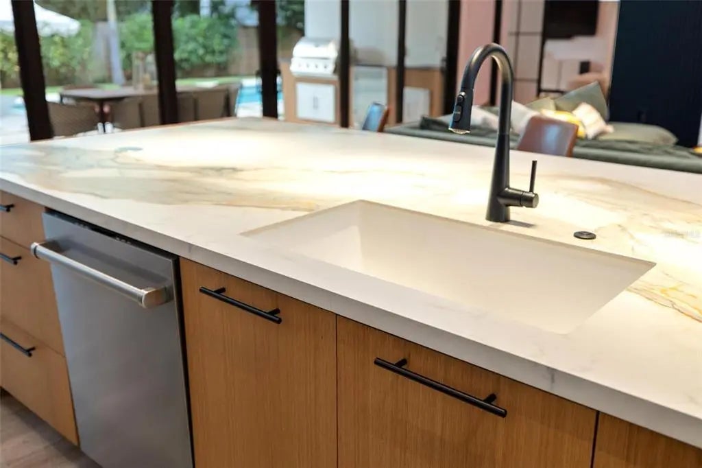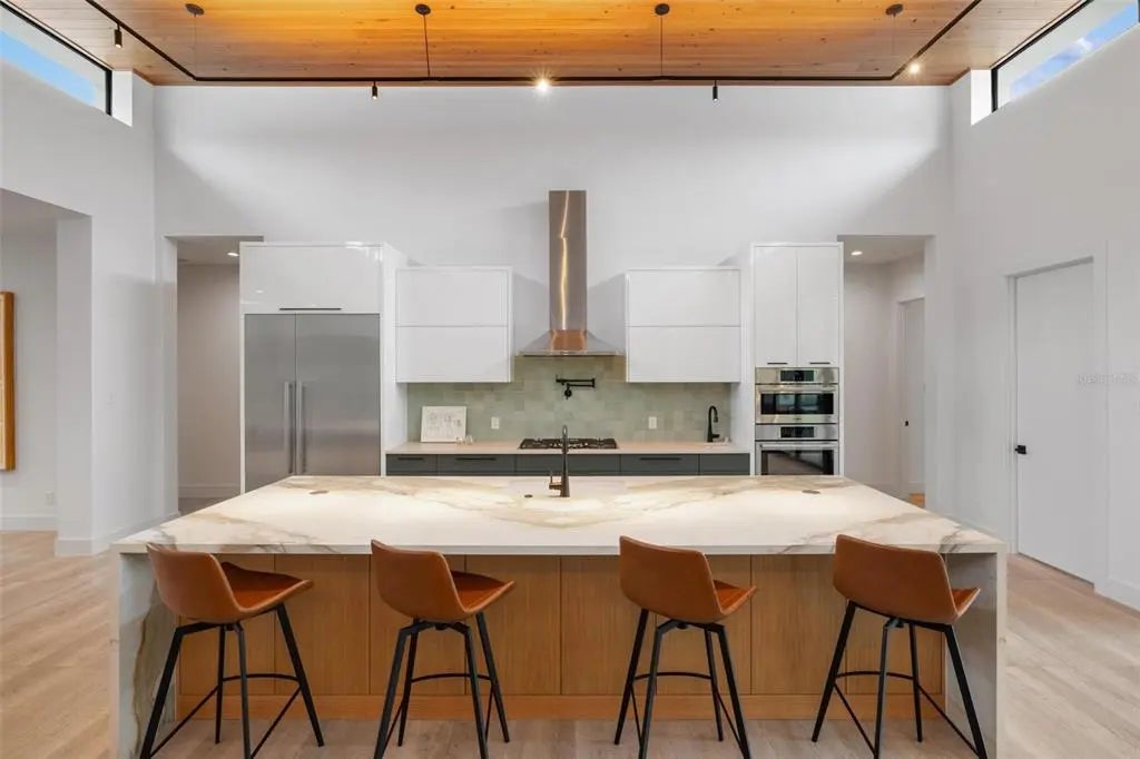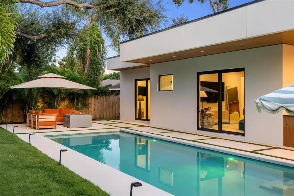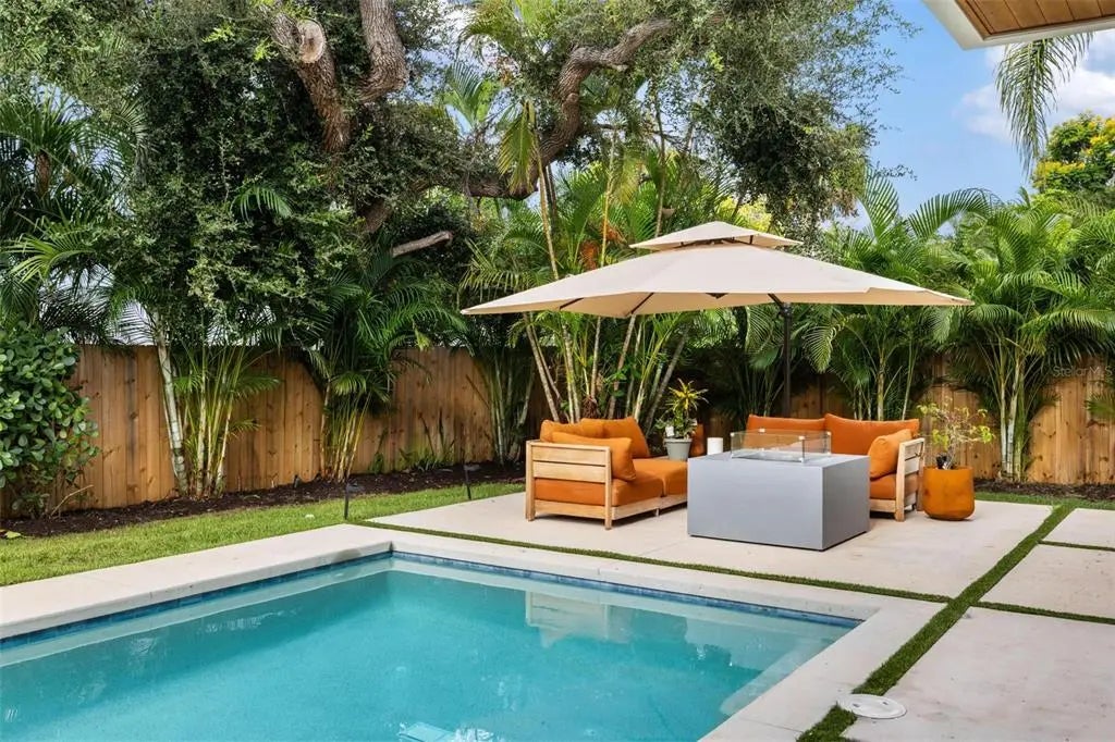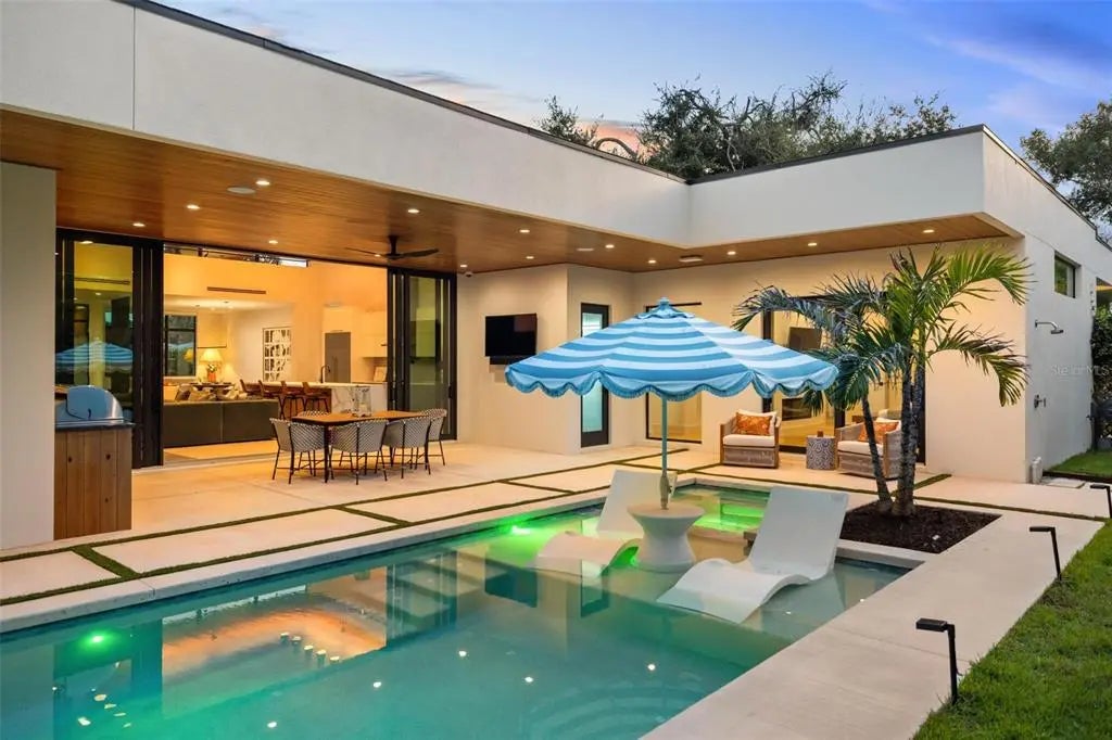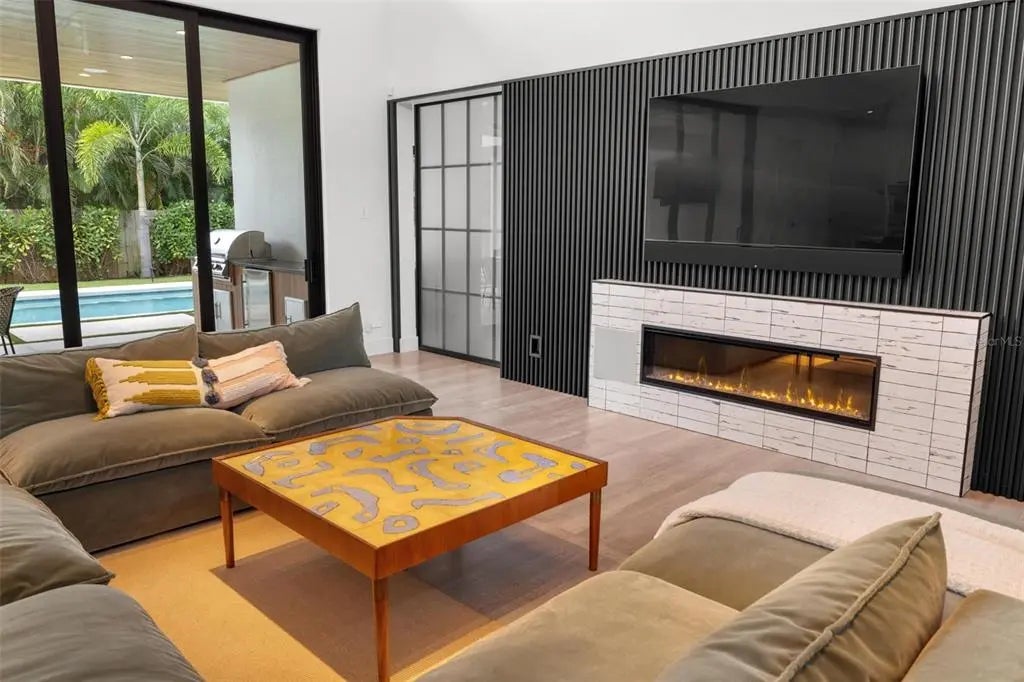 Introducing a rare opportunity in Poinsettia Park II, one of the most desirable enclaves within Sarasota’s coveted West of Trail community. Built in 2023 by Voigt Brothers, this single-level custom residence offers 4,550 square feet of elevated living on an oversized .38-acre lot, where timeless design meets modern innovation. From the moment you enter, soaring ceilings and a flawless Stage 5 drywall finish set the tone for elevated craftsmanship and intentional design. At the heart of the home, a bright and expansive open-concept living area is anchored by a chef’s kitchen featuring Bosch refrigerator and freezer towers, a gas range with pot filler, electronic upper cabinetry, and a striking leather-finished quartzite island. The primary suite offers a private retreat with two spacious walk-in closets, an oversized soaking tub, custom indoor shower, outdoor shower, and a tranquil courtyard. Four additional bedrooms—including a distinctive guest wing with wet bar, wine cooler, and lounge area—provide both flexibility and privacy for residents and guests alike. Luxury finishes continue throughout, including 8-ft solid core doors, custom closet systems, and an electric fireplace in both the living room and primary suite. Smart home technology integrates seamlessly with electronic window treatments, audio and lighting controls, and a whole-home security system. Designed for indoor-outdoor living, the great room opens to a resort-style backyard featuring a covered entertaining area, Blaze outdoor kitchen with gas grill, saltwater heated pool, and two outdoor showers—all wrapped in privacy fencing and enhanced by architectural hardscaping and a full irrigation system. Ideally located near top-rated Southside Elementary, Sarasota Memorial Hospital, and the boutique shopping and dining of Southside Village and downtown Sarasota, with world-renowned Siesta Key, Lido Key, and St. Armands Circle just minutes away. This is more than a residence—it's a Sarasota lifestyle statement.