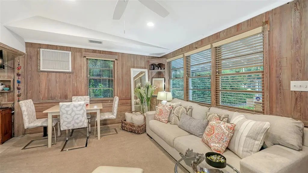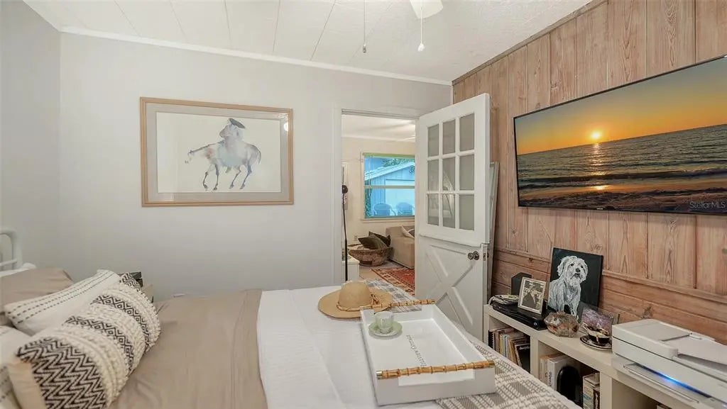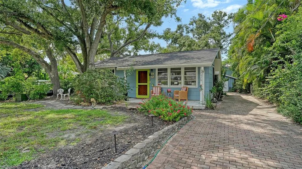 Step into this West of the Trail Charmer, Sarasota’s most sought-after neighborhood… where the canopy of mature trees, coastal breezes, and timeless architecture set the stage for an unparalleled lifestyle. Perfectly positioned just steps from Southside Village’s restaurants and boutiques, and only a short drive to Downtown Sarasota, the Bayfront, and the powdery sands of Siesta Key, this property places you in the very heart of it all. This two-bedroom, two-bath gem effortlessly blends whimsy with warmth. Inside, recent updates bring fresh life to its character, while a raised ceiling in the living area adds volume and light. Adding to its timeless appeal are the Pecky Cypress walls - a rare Old Florida detail that infuses warmth, texture, and both a rustic and refined feel throughout. Out back, an enchanting outbuilding awaits— an above-garage air-conditioned studio makes a perfect bonus space! Whether you choose to live in and love this property as it is, or design your own custom residence, this location is second to none. With its “Old Florida” charm woven seamlessly into an urban lifestyle, West of The Trail continues to be the crown jewel of Sarasota living. Roof - 2021, AC - 2017, Tankless Hot Water Heater - 2023