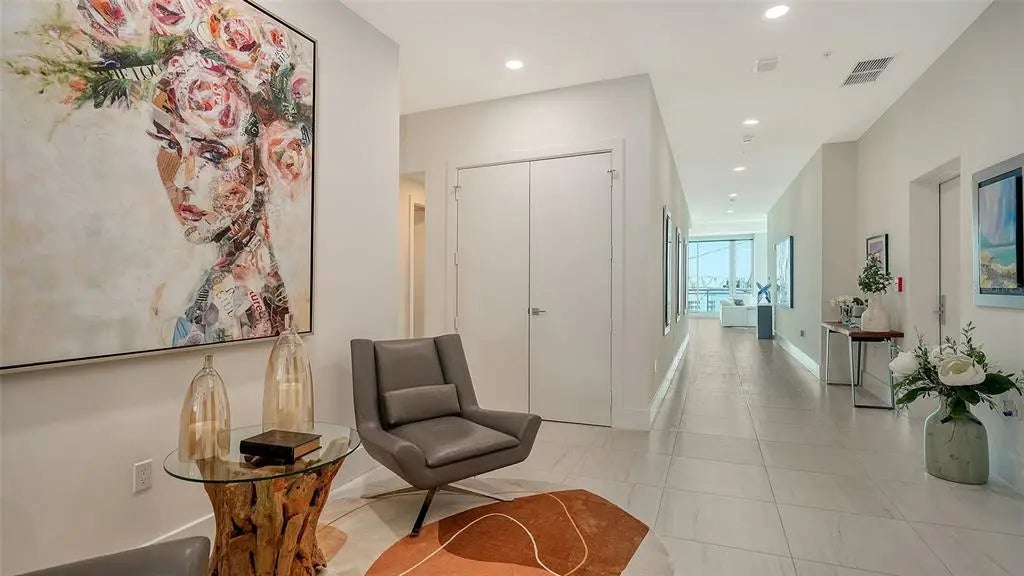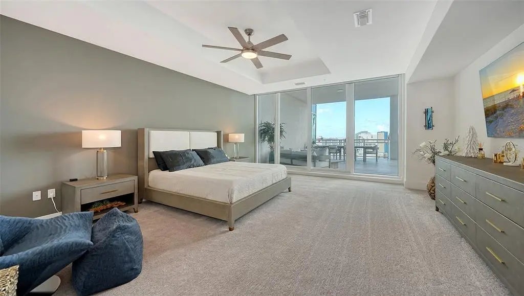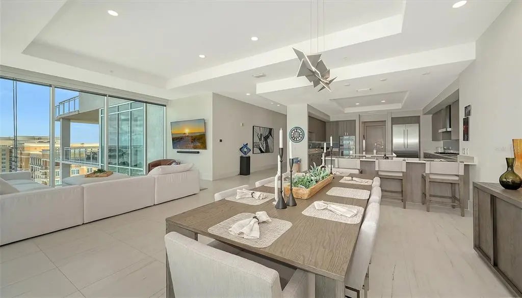 Welcome to the BLVD, where breathtaking views define the home experience! This architecturally stunning, modern condominium stands perfectly positioned in the Bayfront District of downtown Sarasota. Indulge in a luxurious residence soaring above Sarasota Bay, ideally located on the 17th floor, featuring expansive glass walls that offer breathtaking and unobstructed bay views to the north and west, and city views to the east. At this premier address, residents are among the elite who are privileged with an exclusive standard of living. This iconic building offers high-quality interior finishes and advanced coastal construction and design. From the moment you step through the entrance of the private access elevator, the tone is set for the entire space and lifestyle. The flow-through floorplan highlights magnificent bayfront and city views, with impact windows and sliding glass doors leading to several large terraces. Elegant tile flooring and glass railings create a seamless connection between the indoor and outdoor spaces, framing boundless vistas. The expansive great room boasts lofty ceilings, custom lighting, and large tile flooring – ideal for entertaining guests. A culinary showpiece, the kitchen features designer tile backsplash that complements the sleek cabinetry and designer lighting, adding sophistication throughout. An oversized island, complete with high-end quartz countertops and ample storage, anchors the space. For wine enthusiasts and culinary connoisseurs, this remarkable kitchen also features top-of-the-line Thermador appliances with a 6-burner gas cooktop, built-in wall oven, wine fridge, and two spacious pantries with custom shelving. The expansive primary bedroom is complete with two exquisite custom walk-in closets, with a spa-like bath boasting a soaking tub and an oversized glass shower. Two oversized bedroom suites feature private terrace access and luxurious spa-like baths. A powder room and spacious laundry room round out the interior. Quality and comfort are at the forefront, evident with a state-of-the art smart automation system with Lutron lighting, and motorized shades system. Additional highlights include three glass-railed terraces, custom lighting and 8' solid-core doors. BLVD hosts only forty-nine residences and sets itself apart with its unparalleled hotel-inspired amenities and full-time concierge. Residents will enjoy a social club room with a service bar, well-equipped fitness center, conference room, temperature-controlled wine room with private lockable showcases, indoor driving range, and a dog grooming room. The expansive outdoor terrace offers additional outdoor lounge seating and convenient pet facilities. For those seeking ultimate relaxation, the rooftop, home to the best rooftop pool area in Sarasota, features a zero-horizon pool, lounge seating, covered outdoor summer kitchen, and fire pit. 1702 embodies the essence of Sarasota’s lifestyle, where luxury meets sophistication. Strolling on the waterfront, exploring the diverse cuisine, or attending the cultural events in downtown Sarasota makes the BLVD a destination as well as home. And COMING SOON-1000 NORTH Sarasota, an exclusive members-only club located on the bottom floor of the BLVD, and centered in the heart of the city’s cultural corridor. This private retreat will offer elevated dining, handcrafted cocktails, personalized concierge services, and private wine storage, delivering a blend of luxury, comfort, and sophistication.