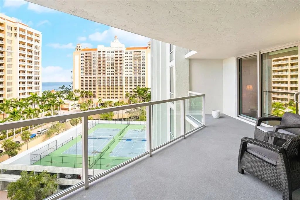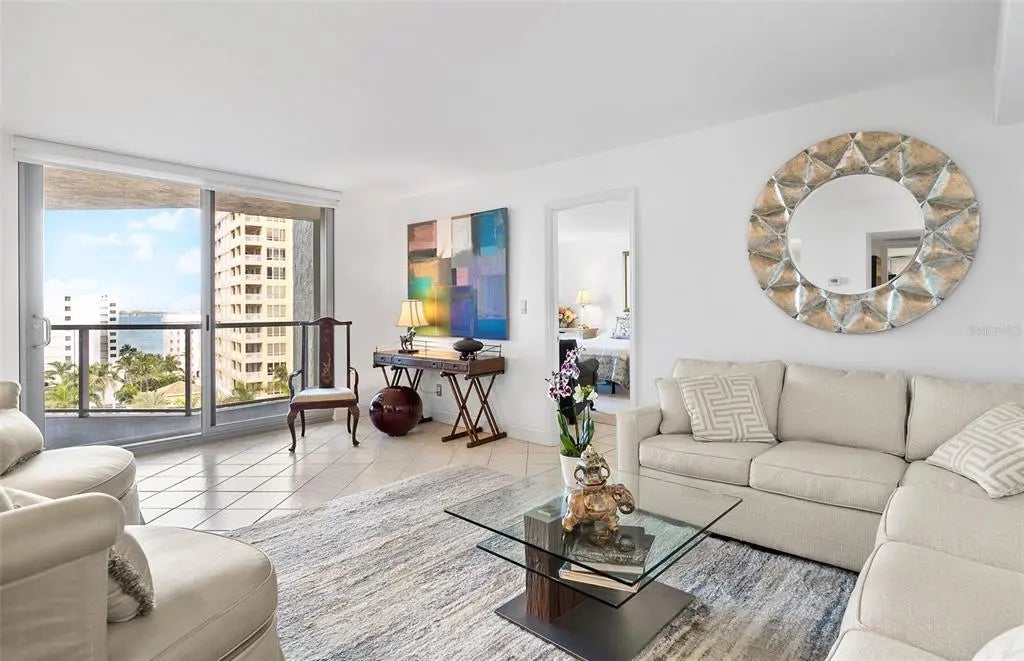 Welcome to your serene retreat at 1111 N. Gulfstream Ave, located in the coveted One Watergate community of Sarasota. This spacious 1,575 sq ft, 2-bedroom, 2-bath condo offers spectacular west-facing views that invite you to unwind and savor breathtaking sunsets every evening. Imagine starting your day with a cup of coffee on one of your private balconies, soaking in the peaceful waterfront scenery. Inside, the open kitchen flows effortlessly into the living space, complemented by a clever split-bedroom floor plan that ensures privacy and comfort for everyone. Thoughtful built-ins throughout the unit provide ample additional storage. One Watergate is a highly sought-after community known for its welcoming vibe and excellent amenities. You will enjoy tennis courts, a sparkling community pool, a modern fitness center, and full handicap accessibility. The building is currently undergoing an extensive renovation to bring fresh, modern updates that blend seamlessly with its timeless appeal ensuring that your new home meets today's highest standards. Whether you are relaxing on the balcony, playing a match on the tennis courts, or enjoying a swim in the pool, this condo offers a perfect blend of comfort, style, and community living in beautiful Sarasota. Come see why One Watergate is truly a special place to call home.