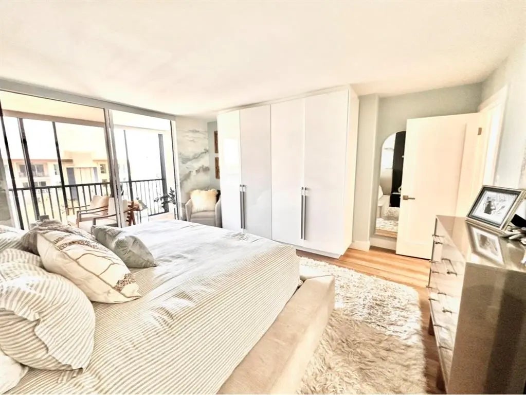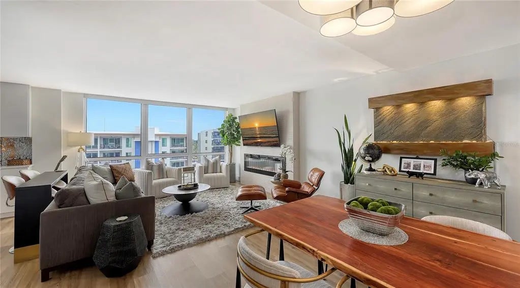 Prime location and downtown living at its very best! Completely updated and renovated, move in ready - designer updated downtown condo with custom high end wood cabinetry throughout kitchen, bathrooms, closets and dry bar areas. Each nook and cranny meticulously planned to maximize every inch. Custom tile work, electric fireplace, electric uv/blackout shades on all windows and sliders. Updated appliances, beautiful lvp and hardwood floors with ample built in storage in each room. At sunset, watch the world go by on your peaceful patio with green space or head to the outdoor benches on property to watch the sunset over Sarasota Bay! Friendly building, with resort style amenities to spare. Management onsite as a bonus! Large swimming pool and quiet sundeck, community fire pit, gazebo and grill, well equipped fitness center with machines and free weights, entertainment room, extra storage and covered under building assigned parking. Structurally sound building, up to date on SIRS milestones, on the hospital grid (bonus during storms), new generator, with a new roof in the last 3 years. Be in the action of downtown, yet tucked away on a quiet cul-de-sac of Gulfstream Ave. City views with building facing beautiful Sarasota Bay, 5 minute walk to Marina and city island, 2 minute walk to burns court, 7 minute walk to all downtown shops and restaurants. Come see for yourself, what a gem this is!