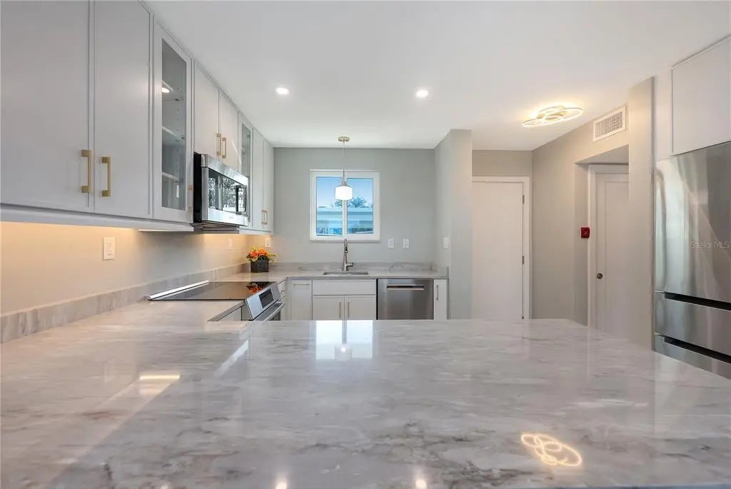 PRIME LOCATION: Sarasota Harbor East is a charming waterfront community exclusively designed for residents aged 55 and above. It boasts an exceptional location with breathtaking views of Sarasota Bay from this first-floor condominium. Historically, Sarasota Harbor has been celebrated as the premier bayfront condominium in Sarasota. This unit features a spacious one-bedroom with a full bathroom and has undergone a complete remodel. High-impact windows, sliding glass doors, and a new front door enhance the unit’s ambiance. Bosch appliances, quartz countertops and solid wood cabinets, and a clubhouse amenities package, including a fully equipped kitchen, library, and restrooms, contribute to the comfort and convenience of residents. Additionally, a large lap pool with bayfront views provides ample recreational opportunities. Residents enjoy a range of amenities, including boat slips, elevators, shuffleboard courts, kayak and bike storage, and a covered parking space. A generous number of guest parking spaces are also available. The homeowners’ association (HOA) fees cover various expenses, such as dock maintenance, exterior building repairs, cable and direct TV, heated community pool, internet, exterior maintenance, ground maintenance, exterior pest control, pool maintenance, water, sewer, and trash. Residents have easy access to popular attractions like St. Armand’s Circle, Lido Beach, and downtown Sarasota. Boat slips are available and can accommodate a 30’ powerboat or sailboat, they are available on a first-come, first-served basis.