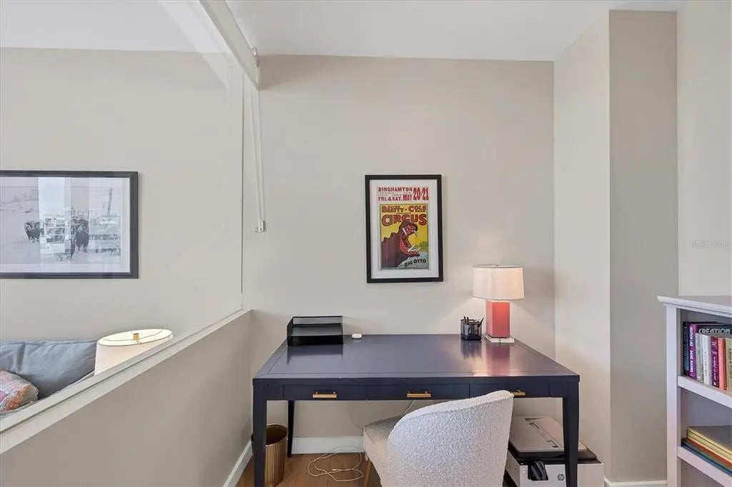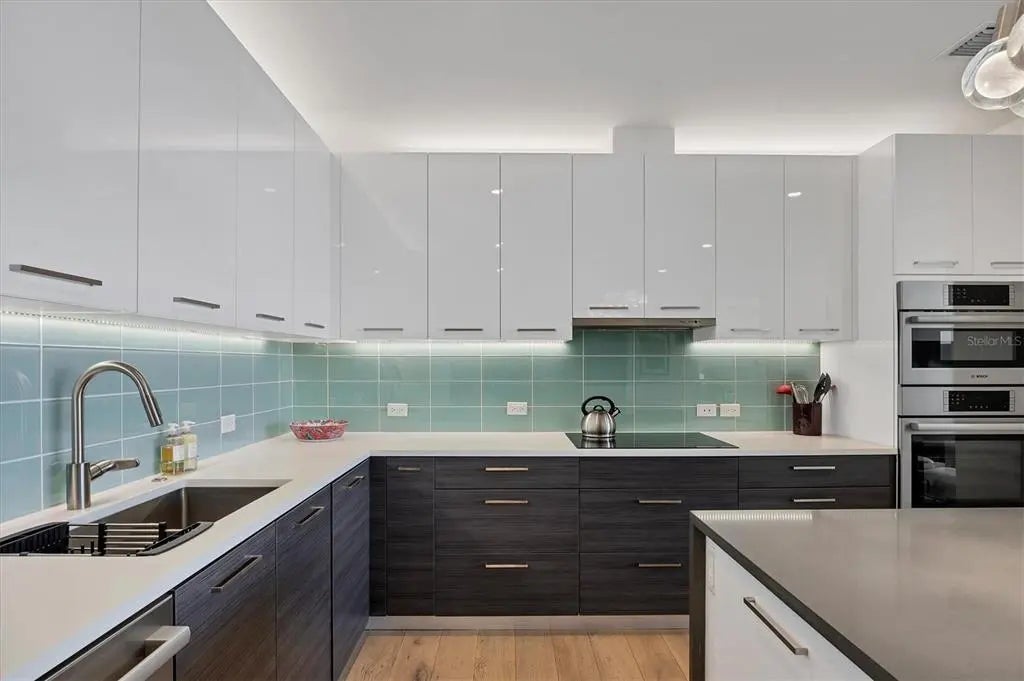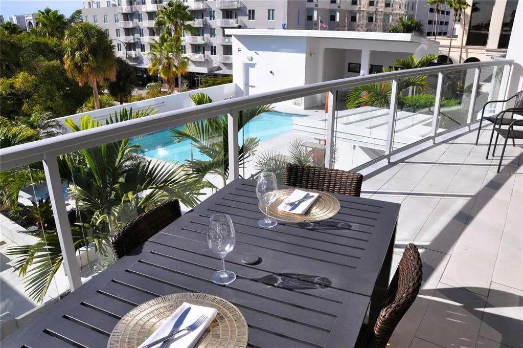 Discover refined downtown living at Sansara, where modern design meets serene, resort-inspired luxury in the heart of Sarasota’s most walkable district. Just steps from the boutiques and cafes of Burns Court and minutes to the waterfront, Residence 302 offers an elevated retreat framed by lush greenery, sparkling pool views, and the soft glow of Sarasota’s city lights. Inside, nearly 2,300 square feet of thoughtfully curated living space unfolds with effortless elegance. Floor-to-ceiling glass filters natural light across wide-plank flooring, custom cabinetry, designer lighting, and motorized shades. The gourmet kitchen blends style and function with European soft-close cabinetry, quartz surfaces, a wine refrigerator, and premium Bosch appliances—an ideal backdrop for intimate dinners or laid-back evenings with friends. A spacious great room opens to a private terrace, inviting you to enjoy quiet morning coffee or sunset breezes above the pool deck. The split layout offers three bedrooms and three baths, each designed for comfort and privacy. The primary suite features a generous custom closet and spa-like bath with dual vanities and a walk-in shower. Two guest suites—one ideally suited as a den or office—provide flexibility for hosting or working from home. Outside your door, Sansara’s boutique amenities create a resort-worthy lifestyle: a heated saltwater pool and spa, cabanas, firepit lounge, outdoor kitchen and grill, plus a well-appointed fitness center—all secured within a private, gated setting. Some furnishings in Residence 302 are available for purchase, allowing you to move in with ease—or begin with a blank canvas and craft your bespoke dream home within one of downtown Sarasota’s most coveted boutique buildings. Experience the rare blend of sophistication, privacy, and walkability that defines life at Sansara. Welcome home to 300 S Pineapple Avenue, Residence 302.