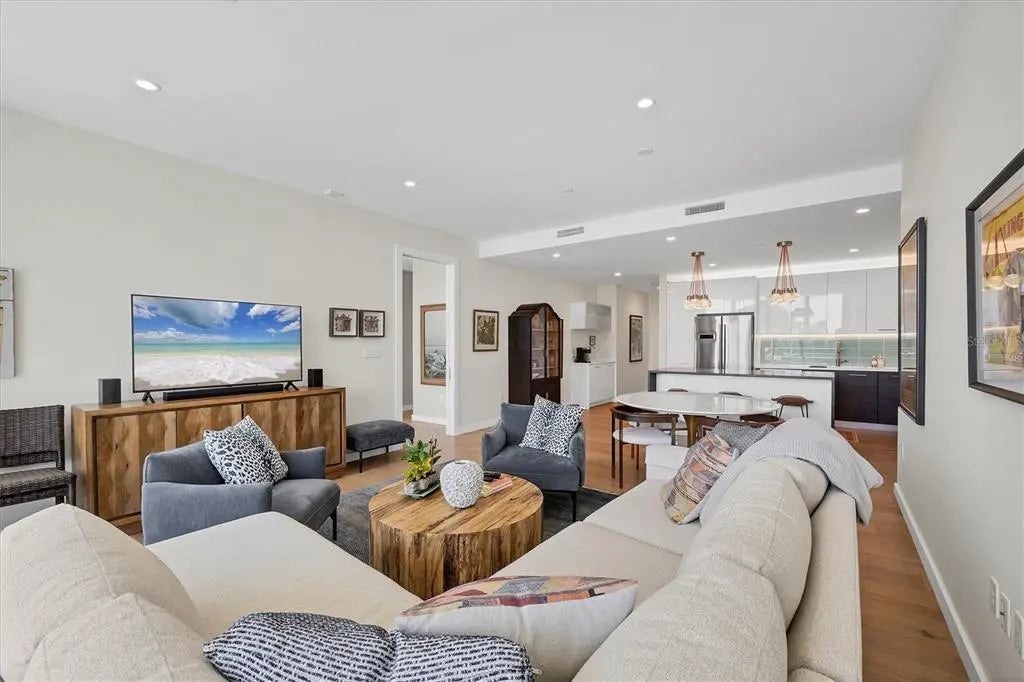 SANSARA, where urban elegance meets coastal sophistication in the heart of downtown Sarasota! Welcome to an unparalleled lifestyle at 300 S. Pineapple Avenue, where modern luxury and refined design converge in one of Sarasota’s sought-after addresses. In the vibrant Burns Court district, Sansara features just two units on each floor and is a short distance from fine dining, charming boutiques, art galleries and the stunning Sarasota Bayfront. This meticulously appointed home with partial bay views boasts three bedrooms and three baths across 2,291 square feet of thoughtfully designed living space. Floor-to-ceiling windows frame breathtaking city views, while soaring ceilings and a neutral color palette create a sense of openness and tranquility. The gourmet kitchen is a chef’s dream, featuring top-of-the-line appliances, custom cabinetry, and quartz countertops, making it ideal for daily living and upscale entertaining. Retreat to the serene primary suite with spa-inspired en-suite bath, spacious walk-in closet and private balcony access. Additional features include a wine refrigerator, motorized shades, designer lighting and a coffee bar. Enjoy resort-style amenities, including a sun deck, pool, fitness center, concierge services, dedicated storage locker, and secure, assigned parking under the building. Experience the ultimate in downtown Sarasota luxury living, where every detail has been carefully chosen for comfort, convenience and style. Schedule your private showing today!