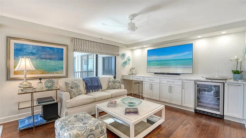 Luxurious Gulf-Front Corner Condo with Sweeping Views – Lido Surf & Sand. Experience the pinnacle of beachfront living in this rarely available southwest corner residence at Lido Surf & Sand, offering unparalleled panoramic views of the Gulf of Mexico, Lido Beach, and all the way to Siesta Key. Perched on the 6th floor of the coveted gulf-front atrium building, this 2-bedroom, 2-bathroom end-unit boasts 1,456 sq. ft. of elegant interior living space plus an additional 372 sq. ft. of expansive wraparound balconies—perfect for soaking in both sunrise and sunset. One of only four corner units per floor, this light-filled condo features floor-to-ceiling beach views from every main living space, creating a true indoor-outdoor lifestyle. The open-concept layout flows seamlessly from the dining area and spacious great room to the full-width beachfront balcony—ideal for both intimate evenings or entertaining a crowd. The custom gourmet galley kitchen is thoughtfully designed with beautiful countertops, custom lighted cabinetry, and generous storage, making it both beautiful and functional, new appliances, perfect for entertaining. Enjoy peace of mind with a new water heater (2023), brand new A/C unit, and upgraded hurricane-impact windows, sliders, and front door. Wake up to coffee on your private lanai with endless beach views or wind down with the gentle sounds of the surf in the evening. A newly planned social room will elevate your outdoor living experience even further. Just two blocks from a private nature preserve—perfect for peaceful walks or kayaking—and moments from St. Armands Circle, where you can explore boutique shopping and exceptional dining. Whether you're seeking a serene retreat or a vibrant coastal lifestyle, this one-of-a-kind residence offers the best of both. Your Lido Key beachfront lifestyle awaits. Schedule your private tour today.