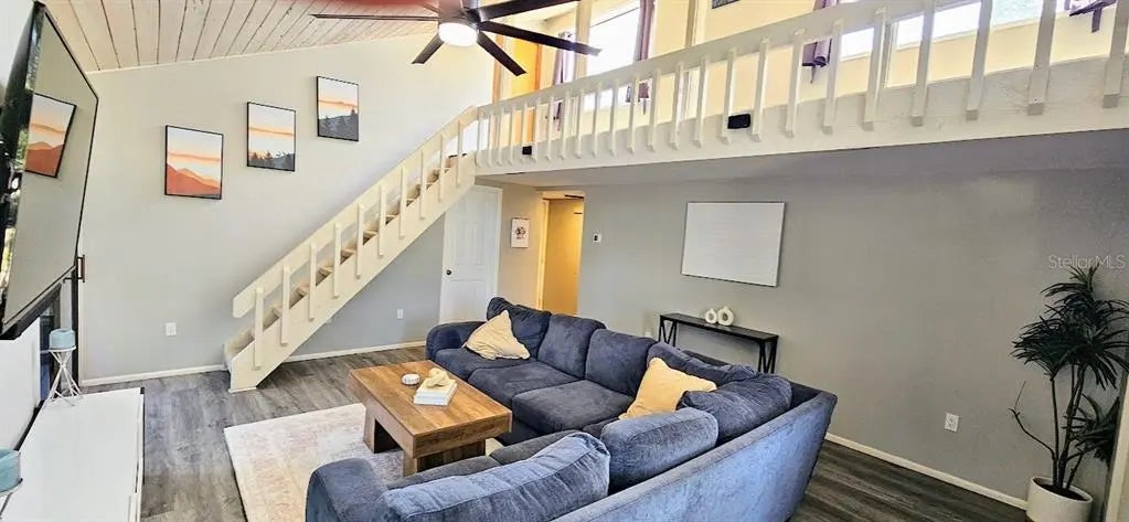 Welcome to this beautifully maintained end-unit condominium ideally situated in one of Sarasota’s most sought-after neighborhoods. Just minutes to vibrant downtown Sarasota’s arts district, offering fine dining, boutique shopping, theaters, and cultural venues. Close to the scenic Bayfront Park and Marina Jack, perfect for waterfront dining, walking trails, and watching sunsets over Sarasota Bay. Easy access to Sarasota Memorial Hospital, world-class beaches (including Siesta Key and Lido Beach), and premier golf courses. This spacious 2-bedroom, 2-bath split-plan layout offers privacy and comfort, ideal for both seasonal or year-round living. As an end unit, this home features extra privacy and natural light, enhanced by soaring vaulted Pecky Cypress ceilings and large transom windows that fill the open-concept living area with abundant light, while adding warmth and architectural character. The open floor plan includes a spacious kitchen, perfect for entertaining, and flows into the main living and dining areas. Enjoy a bonus loft perfect for a home office, guest space, or creative studio, and relax on two private, screened-in lanais—ideal for morning coffee or evening cocktails. Additional features include updated bathrooms, in-unit laundry, and plenty of storage throughout. Whether you're looking for a primary residence, seasonal retreat, or an income-producing property (with 6-month rental capability), this home offers the best of Sarasota living in an unbeatable location.