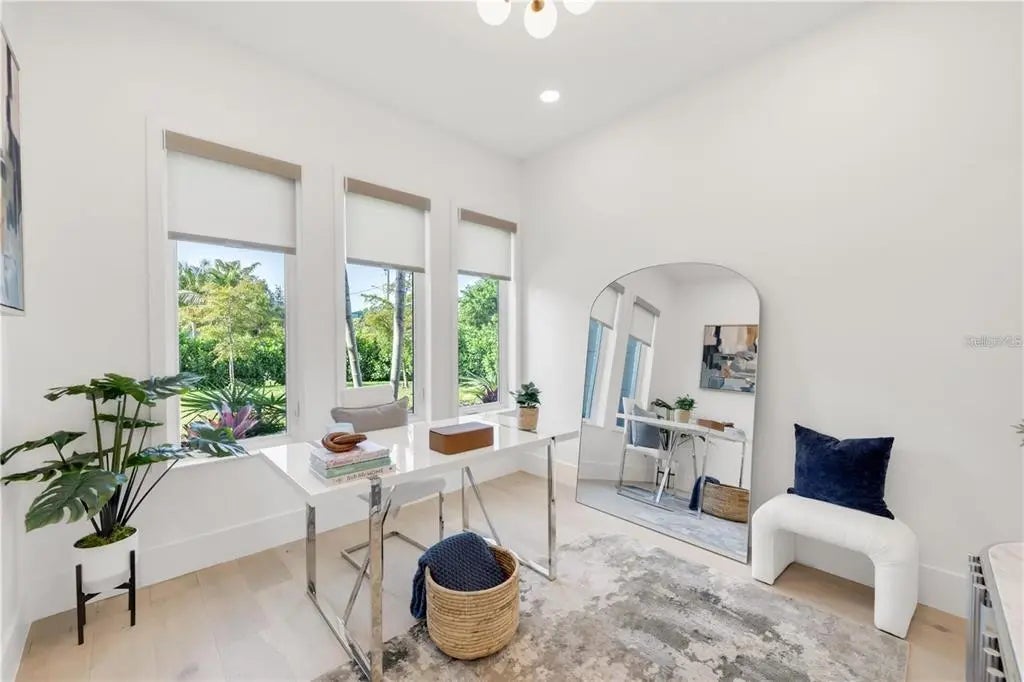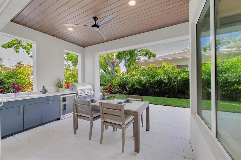 Under contract-accepting backup offers. Nestled West of the Trail and just steps from Southside Village, this stunning New Construction 2-story luxury home offers the perfect blend of location, design, and lifestyle. Positioned between Siesta Key’s world-famous beaches and Downtown Sarasota, you'll enjoy easy access to the city’s best dining, shopping, and cultural attractions—all within minutes. Designed with modern elegance, the home features 5 bedrooms, 5 full bathrooms, and 3,595 square feet of thoughtfully crafted living space. Additionally, there is a large bonus room for an office or gym, an upstairs second living room area, and several balconies to enjoy. From the grand 20-foot ceilings in the main living area to the floor-to-ceiling windows that flood the interior with natural light, every detail has been curated for style and comfort. Light-tone engineered hardwood floors flow throughout the home, with a herringbone pattern in the foyer. The gourmet kitchen is outfitted with GE Cafe appliances, quartz countertops, and custom cabinetry, flowing seamlessly into the open living and dining areas, with a wine display. Step through glass sliding doors to discover a resort-style outdoor oasis, complete with a covered patio, outdoor kitchen, pool, and hot tub spa, all surrounded by lush landscaping. The first-floor primary suite offers a tranquil retreat with direct outdoor access, a spa-like bathroom, and a generous walk-in closet. Upstairs, three additional en-suite bedrooms and two rooftop decks provide privacy and space for guests or family. This newly built residence offers peace of mind with the latest in building codes, energy efficiency, and storm protection. Modern insulation, impact-rated windows and doors, and up-to-date mechanical systems translate into lower utility bills, reduced maintenance, and enhanced safety. You’ll also benefit from turnkey readiness—no need for costly renovations or updates. With its prime location, high-end finishes, and indoor-outdoor flow, this home captures the essence of luxury Sarasota living. Rarely do homes become available in this coveted neighborhood—this is your opportunity to own this exceptional property.