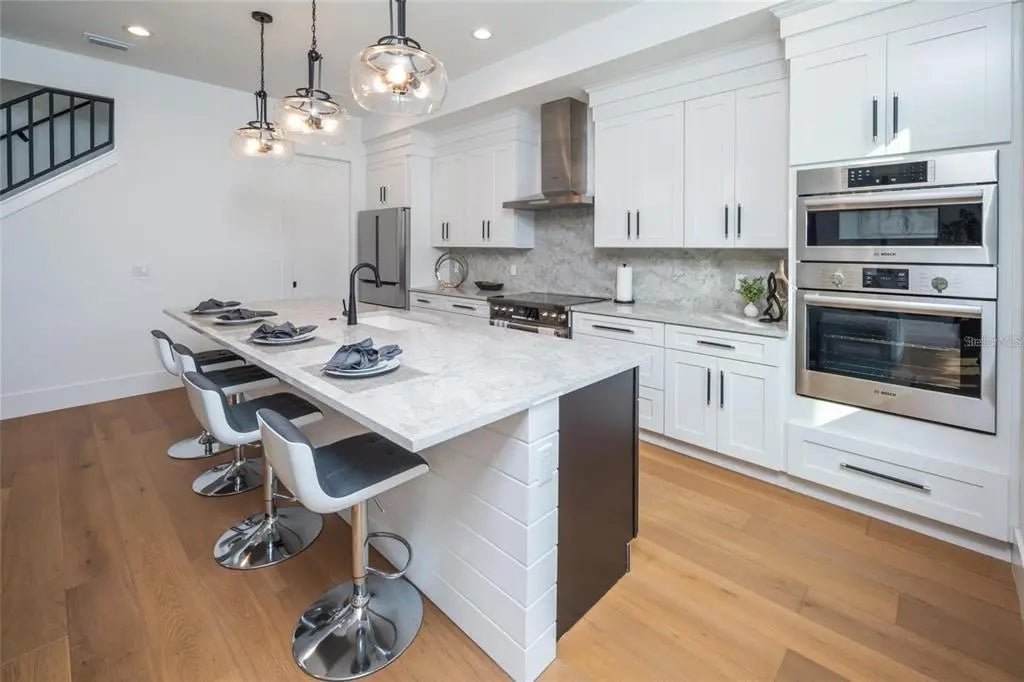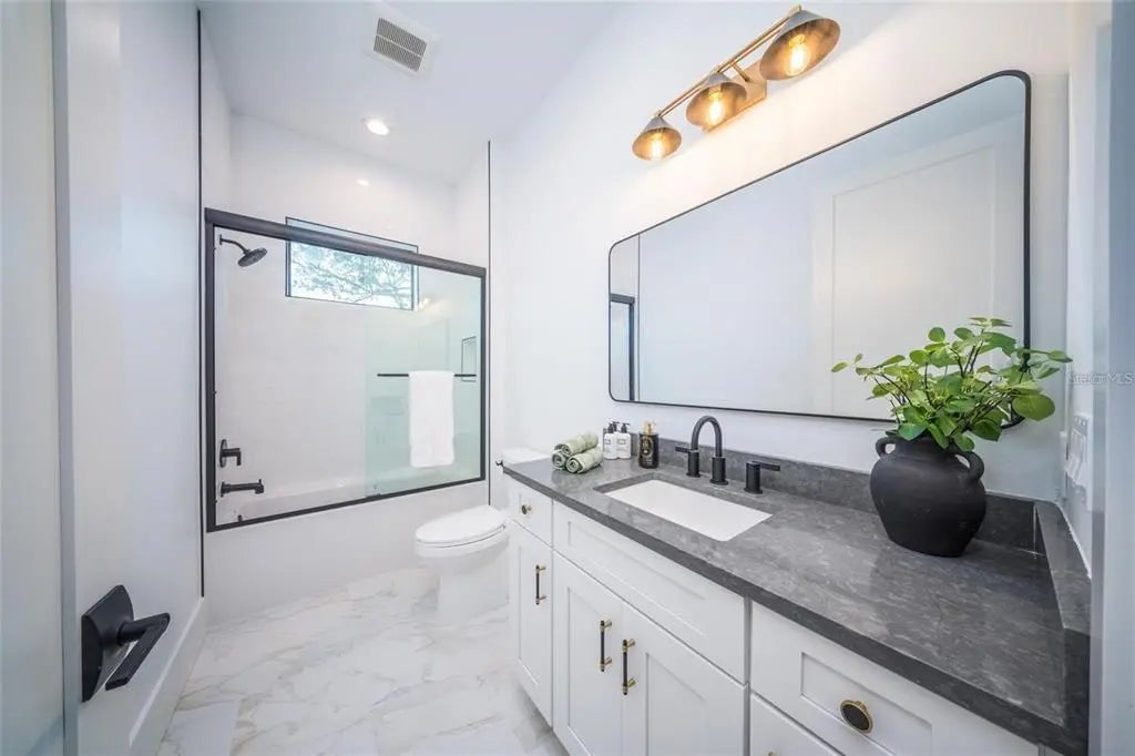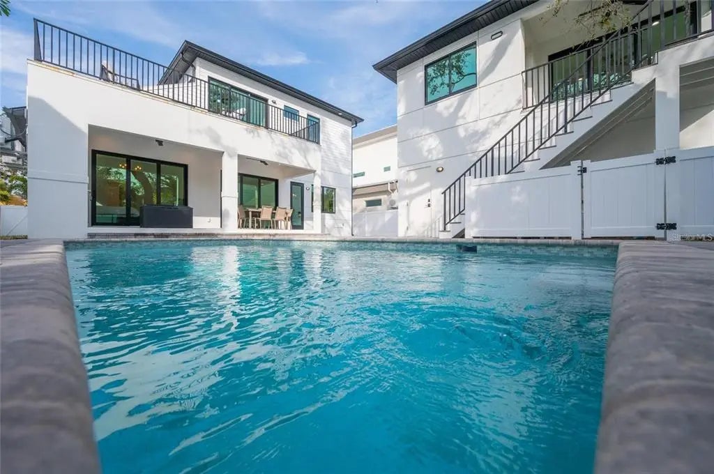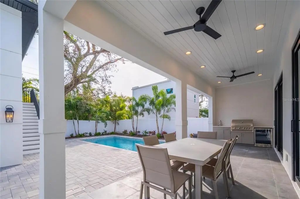 Introducing an exquisite new construction home in the heart of Sarasota, just minutes from downtown and walkable to Arlington Park. This 2,743 sq. ft. modern residence offers 6 bedrooms and 4.5 baths, including a rare detached accessory suite—perfect for hosting guests, accommodating extended family, creating a rental opportunity, or setting up a private office. Inside the main home, an open and light-filled floor plan showcases elegant finishes and a direct view of the pool. The chef’s kitchen features Bosch appliances, quartz countertops, custom cabinetry, and a walk-in pantry, flowing seamlessly into the living room and out to an expansive patio with an outdoor kitchen, paver pool deck, and lush landscaping for effortless indoor–outdoor living. Warm-toned engineered hardwood is throughout the home. The first-floor primary suite is a luxurious retreat, complete with high ceilings, a serene pool view, an oversized walk-in closet, and a spa-inspired bathroom with soaking tub, separate shower, and designer finishes. For convenience, a stacked washer/dryer is tucked into the suite, complemented by a full laundry room upstairs. There is a guest bedroom on the main floor, and an additional three bedrooms upstairs, with full bathrooms and multiple balconies. Built to the latest codes, this home offers peace of mind with energy-efficient systems, impact-rated windows and doors, modern insulation, and storm-ready construction—delivering lower utility costs, reduced maintenance, and lasting value. Perfectly situated between Siesta Key and Downtown Sarasota, you’ll enjoy quick access to award-winning beaches, fine dining, shopping, and cultural attractions. Whether you’re entertaining by the pool, enjoying a night out, or unwinding at home, this property offers the ultimate Sarasota lifestyle.