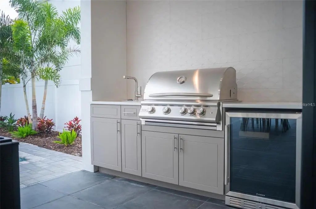 - Exterior FeaturesAwning(s), Balcony, Irrigation System, Lighting, Outdoor Grill, Outdoor Kitchen, Private Mailbox, Rain Gutters, Sidewalk, Sliding Doors, Sprinkler Metered