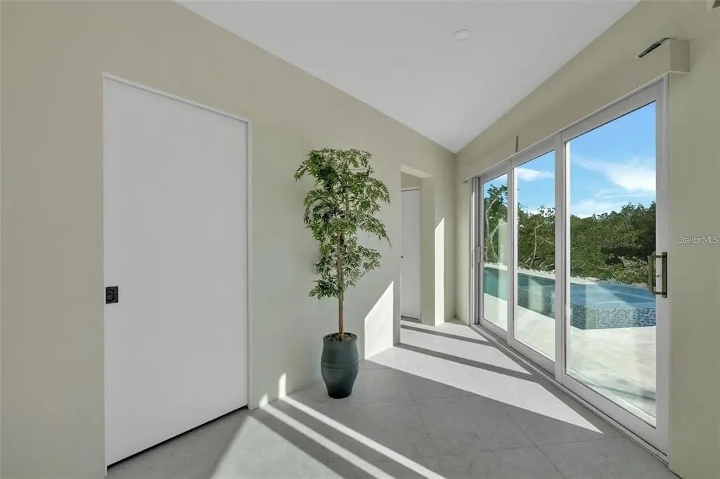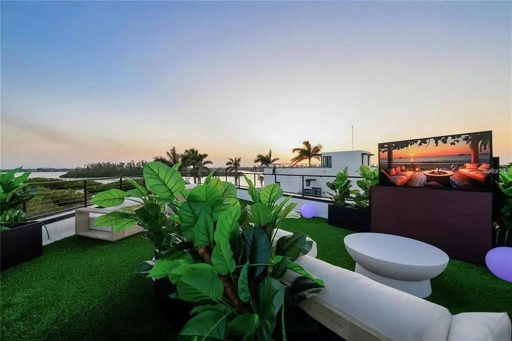 Welcome to 1406 Tangier Way, a breathtaking expression of coastal contemporary luxury in San Remo Estates in Sarasota, where architectural excellence meets waterfront serenity. This 3,294 sq. ft. home is a seamless blend of sophistication, innovation, and artisanal craftsmanship, offering four bedrooms, three full baths, and unparalleled views of Sarasota Bay. Every detail has been meticulously curated, from the custom Doca cabinetry, hand-crafted and imported from Spain, to the high-grade Portuguese porcelain countertops that extend from the kitchen to the ceiling, creating a striking visual statement. The gourmet kitchen is equipped with state-of-the-art Fulgor Milano appliances, an oversized island, and bespoke finishes, setting the stage for an elevated culinary experience. Walls of strategically placed windows flood the interiors with natural light, enhancing the contemporary loft-inspired aesthetic while showcasing the property’s unrivaled water views. The second-floor master suite is a sanctuary of refined elegance, featuring a private office, floor-to-ceiling water views, and a spa-inspired en-suite bath adorned with intricate, high-end tilework, exuding a sense of tranquility and indulgence. Ascend to the rooftop terrace, where artificial turf, a wet bar, and panoramic views create an unforgettable setting for sunset soirees and intimate gatherings under the stars. The outdoor living space is nothing short of an oasis, boasting leather-marble walkways, a champagne spa, a gas fireplace, and a fully equipped outdoor kitchen, designed for seamless alfresco entertaining. An automated mosquito misting system ensures year-round comfort, while Control4 smart home technology integrates lighting, climate, security, and entertainment at the touch of a button, delivering an effortlessly luxurious lifestyle. Boaters will revel in the two newly constructed boat lifts and direct access to Sarasota Bay, making this home an extraordinary retreat for waterfront living at its finest. Built with strength, timeless beauty, and the highest level of craftsmanship, this extraordinary waterfront residence is truly a rare find—a once-in-a-lifetime opportunity to own an unparalleled slice of Sarasota’s coastal paradise. Schedule your private showing today—this exclusive sanctuary could be yours.
