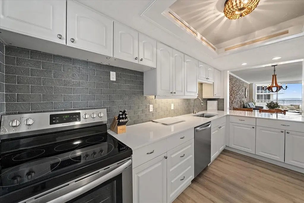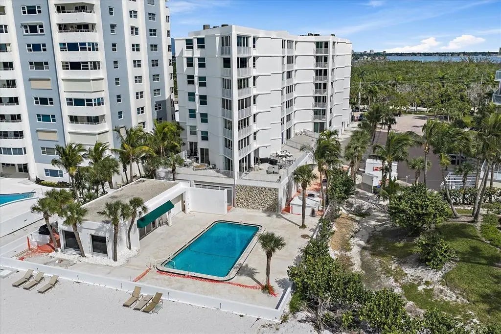 Welcome to Lido Harbour Towers, where beachfront living meets modern chic. This top-floor, one-bedroom, one-bathroom furnished condominium offers a serene retreat with panoramic views of the Gulf of Mexico to the southwest and the natural beauty of Ted Sperling Park to the northeast. Peek inside to find a light-filled open floor plan, thoughtfully updated with modern finishes throughout. Expansive hurricane-impact sliders lead to your private balcony, the perfect place to enjoy morning coffee or a breathtaking sunset over the water. The contemporary kitchen features sleek quartz countertops, stainless-steel appliances, and a convenient breakfast bar, ideal for entertaining or quiet nights in. The spacious bedroom includes a large walk-in closet, and the upgraded bathroom compliments the home’s modern chic design. Recent improvements include a new HVAC system and water heater, ensuring comfort and efficiency year-round updated appliances and electrical panel. Residents of this secure, beachfront community enjoy a locked building with key-fob access, a covered parking space in the under-building garage, private storage locker, and access to an on-site pool and kayak/paddleboard storage. The amenities and clubhouse are currently being reimagined to further enhance the beach front experience. Whether you’re seeking a seasonal escape, investment opportunity, or a maintenance-free home by the sea, Lido Harbour Towers offers the ideal blend of location, comfort, and coastal charm. Just moments from St. Armands Circle & Downtown Sarasota, you’ll have access to world-class dining, boutique shopping, and vibrant experiences all while enjoying the laid-back luxury of Lido Key living.