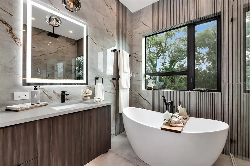 Under contract-accepting backup offers. Luxurious New Build in Sarasota: A 5-Bedroom Haven Close to Siesta Key! Indulge in the epitome of upscale living in this newly constructed 5-bedroom, 6-bathroom masterpiece, ideally situated near Siesta Key and the vibrant heart of Downtown Sarasota. This exquisite home offers a harmonious blend of elegance and comfort, designed for those who cherish a high-end, yet comfortable lifestyle. Step inside your personal sanctuary where a private, heated swimming pool is enhanced by a stunning tall waterfall feature, creating a resort-style ambiance that invites relaxation and leisure. The beautifully designed outdoor spaces, complete with an elegant dining setup and serene balcony on the upper level., provide idyllic settings for savoring the balmy Florida breezes. The home's interior is a testament to refined living with an open-plan design that allows for an effortless flow between the living, dining, and kitchen areas. The state-of-the-art chef’s kitchen is a centerpiece, featuring a custom-designed island with an extended countertop and seating area, perfect for casual dining or upscale entertaining. Equipped with top-tier appliances, expansive countertops, and sleek cabinetry, this kitchen is both beautiful and functional. For those who work from home, the dedicated office space is an absolute delight, boasting a built-in desk and cabinetry. This well-appointed area ensures productivity and comfort, blending seamlessly with the rest of the home's luxurious aesthetics. Accommodations include five generously sized bedrooms, each creating a private oasis. The lavish master suite and additional bedrooms are meticulously appointed, ensuring every comfort is met with luxury. Located just a short drive from the renowned Siesta Key Beach, this property offers access to the exquisite sandy beaches and crystal-clear waters, along with proximity to Siesta Key Village’s array of boutique shops, gourmet restaurants, and lively entertainment options. Seize the chance to make this luxurious haven your own and experience a blend of relaxation and sophistication like never before. Schedule your exclusive tour today and step into a lifestyle redefined.