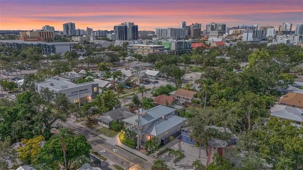 Experience elevated downtown living in this 2025 NEW CONSTRUCTION home just steps from Main Street. Built on 16-gauge steel framing, this 3,154 sq ft residence sits 23 FEET ABOVE SEA LEVEL and more than 10 feet above the floodplain in coveted ZONE X, a rare combination of elevation and location in downtown Sarasota. The open-concept layout features 10-foot ceilings and a chef’s kitchen with polished marble countertops, 10-foot island, 48” Thor gas range, Miele dishwasher, dual Electrolux refrigerator and freezer, walk-in pantry, reverse osmosis, and whole-home water filtration. The first-floor primary suite opens to a private patio overlooking the HEATED SALTWATER POOL and includes a spa-style bath with freestanding tub, walk-in shower, dual sinks, and dual closets. Upstairs, three en-suite bedrooms provide flexibility for guests or family, including one with a private balcony. The fully fenced backyard is designed for privacy and entertaining, with architectural plans available for a FUTURE GARAGE OR ADU, offering flexibility rarely found in downtown new construction. Additional features include hurricane-rated impact windows, standing seam metal roof, and hard-wired Arlo video entry. Located in Gillespie Park with walkable access to DOWNTOWN SARASOTA, The Bay, Marina Jack, Payne Park, and the beaches of Lido and Siesta Key.