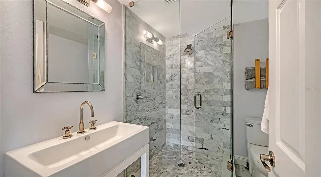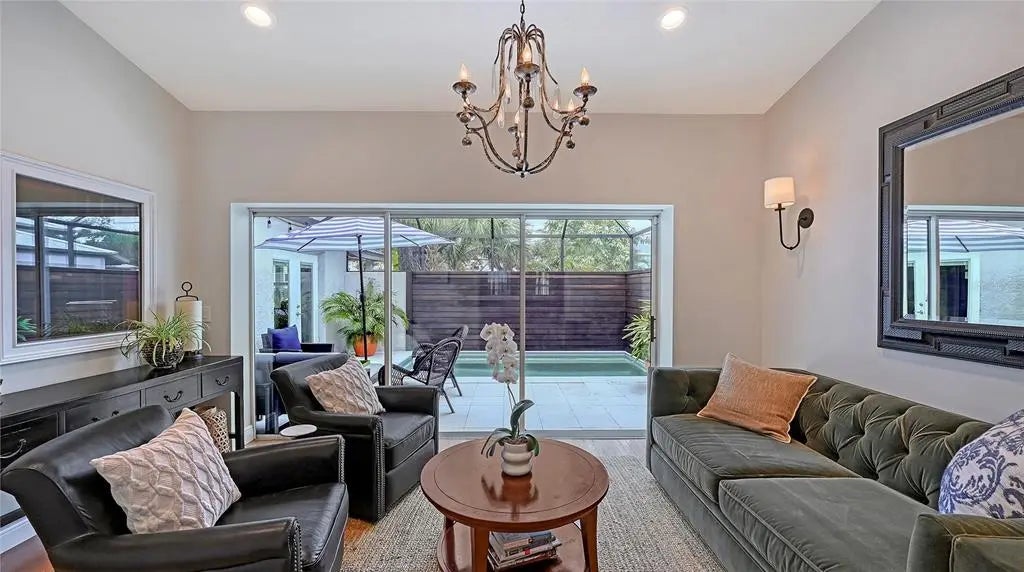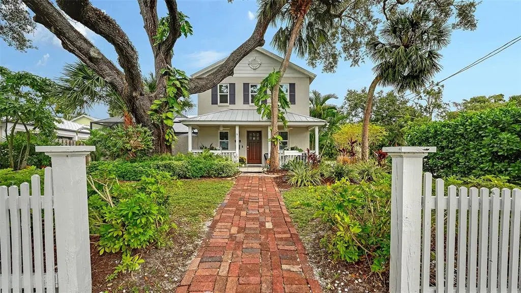 Perfectly situated in Sarasota’s vibrant Downtown just minutes from restaurants and boutiques within the coveted Gillespie Park neighborhood, this beautiufully renovated 2,938 sf, 4-bedroom, two-story Key West–inspired residence blends timeless architectural charm with modern sophistication. A magnificent oak tree graces the front yard, framing the home’s welcoming façade, while a historic brick driveway—crafted from original Sarasota street bricks—sets the stage for the artistry and attention to detail found throughout. Remodeled and expanded in 2017, the interior showcases solid wood floors, designer lighting, and refined finishes which create a warm yet elegant ambiance. The gourmet kitchen impresses with custom cabinetry with soft-close drawers, quartz countertops, and top-tier appliances including a professional Forno gas range. Open-concept living and dining spaces are enhanced by an electric fireplace and abundant natural light streaming through windows and doors, many of which are impact-rated. Upstairs, rich hardwood flooring continues through the private quarters, including the serene primary suite featuring a custom-built walk-in closet and a spa-inspired bath adorned with porcelain tile, designer fixtures, and a soothing neutral palette. The flexible floor plan offers versatility for today’s lifestyles: a downstairs bonus area—currently used as a Pilates studio with private entry—is zoned for business or rental use and could easily serve as a large luxurious primary suite, family room, media room, or fitness space. A beautifully designed 600 sf apartment provides fully independent or multi-generational living with its own contemporary kitchen, induction cooktop, full-size washer and dryer, and private balcony. Perfect for hosting guests, mother-in-law suite, extended family, or generating income, this versatile space has a separate entrance, parking spot and its own address, and qualifies for one-week minimum rentals. Additional highlights include a temperature-controlled wine room, an oversized laundry area, three zoned AC, and a security system. Outside, a lush courtyard with screened lanai and heated pool creates a tranquil retreat for relaxing or entertaining amid tropical landscaping. Set on a spacious, fenced corner lot, the property offers abundant privacy along with an expanded 2½-car garage featuring an impact-rated door and generous storage. Residents of Gillespie Park enjoy one of downtown Sarasota’s most walkable locations—just moments from Main Street and the new Bayfront Park where you can catch sunset, take in water views while enjoying a concert, yoga or lounging with your feet in the sand. Enjoy nearby fine dining, boutique shopping, arts and cultural venues, and easy access to SRQ International airport. The neighborhood’s namesake park offers tennis and pickleball courts, dog areas, and a lively community spirit that captures the essence of urban Sarasota living. Blending the character of Sarasota’s historic past with the ease of modern luxury, this exceptional residence delivers rare flexibility, craftsmanship, and an enviable location in the heart of it all.