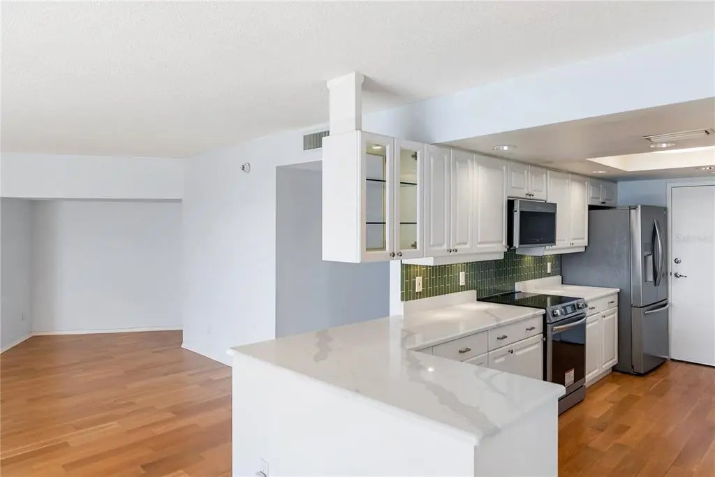 One or more photo(s) has been virtually staged. SELLER SAYS “MAKE THIS CONDO YOURS TODAY!” Live the Sarasota waterfront lifestyle you’ve been dreaming of in this beautifully updated 2-bedroom, 2-bath residence at the highly desired Regency House on Gulfstream Avenue. Perfectly situated on the 4th floor, this 1,424 sq. ft. condo features a wall of floor-to-ceiling windows that showcase sparkling Sarasota Bay views and fill the open-concept living and dining areas with natural light. The designer kitchen offers stone countertops, custom cabinetry, and stainless-steel appliances—ideal for those who appreciate both function and style. The spacious primary suite provides a serene retreat with panoramic bay views, a generous closet, and a tastefully updated ensuite bath. The large second bedroom is perfect for guests, a home office, or a seasonal retreat. Residents enjoy exceptional amenities including a 24-hour concierge, heated pool, updated clubroom, secure covered parking, and a pet-friendly environment. Located just steps from Marina Jack, Bayfront Park, Main Street dining, shopping, and Sarasota’s thriving arts scene—this is downtown living at its best. Easy to schedule showings. Come see why this is one of the BEST values on the Bayfront!
