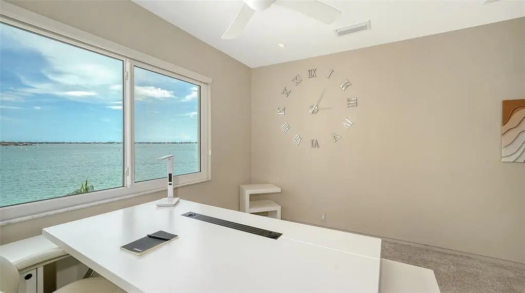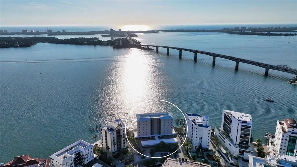 Experience the best of Sarasota living from this exceptional southwest corner residence on the 6th floor of a boutique condominium nestled on the prestigious Golden Gate Point peninsula. Located in an established, quiet bayfront community with only four residences per floor, this move in ready, furnished 2-bedroom, 2-bath home offers 1,786 square feet of thoughtfully designed living space. Soak in breathtaking panoramic views that span from the iconic John Ringling Bridge and Sarasota Bay to Bird Key, Big Pass, downtown Sarasota’s twinkling city lights, and glorious Gulf of Mexico sunsets. Abundant natural light pours through storm-rated PGT hurricane impact windows, accentuating the updated kitchen and bathrooms, and creating a bright, welcoming ambiance throughout. The spacious primary suite features a custom room-size walk-in closet and spa-inspired en suite bath, while the second bedroom also offers generous closet space with custom fittings. A separate laundry room, newer HVAC system, and a tankless water heater provide modern comfort and efficiency. Residents of this intimate bayfront community enjoy a waterfront pool, shaded seating area, day dock, and a fishing pier — all just steps from your door. Covered parking and on-site guest parking complete the package. Enjoy serene waterfront living just moments from downtown Sarasota, St. Armands Circle, and the Gulf beaches. A rare opportunity in one of the city’s most coveted neighborhoods.