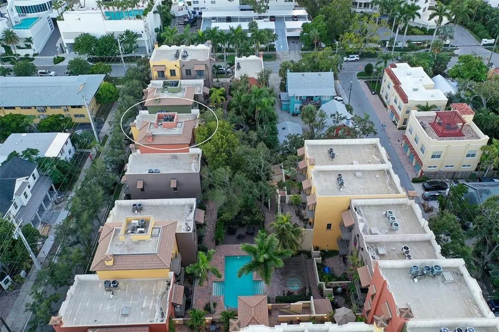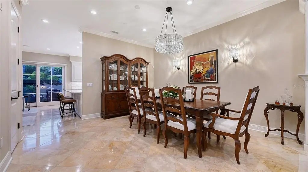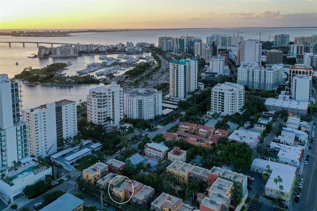 Under contract-accepting backup offers. Tucked within the highly sought-after Burns Court Villas in the heart of downtown Sarasota, this exquisite and inviting rarely available two-story townhouse lives with the comfort and privacy of a single-family home yet offers all the conveniences of vibrant downtown Sarasota living just outside your door. With nearly 2,000 square feet of thoughtfully designed space, 3 bedrooms, 2.5 baths, and 3 private balconies plus the largest private courtyard in the community, this residence beautifully balances elegance, comfort, and everyday livability. Step through the solid mahogany front door into light-filled interiors anchored by polished travertine floors, high ceilings, and soft natural light filtering through impact-rated windows and doors. The open living spaces flow gracefully, from the welcoming formal living room with gas fireplace, to the elegant dining room, and on to the fantastic family room just off the kitchen—a peaceful retreat overlooking the lush, private courtyard where birds sing and green Climbing Fig adorns the walls creating a rare, serene extension of the living space for morning coffee, quiet reading, or intimate outdoor entertaining. The kitchen remodel, completed in 2023, reflects impeccable craftsmanship and refined taste. Custom wood cabinetry with soft-close drawers and pull-out storage is paired with quartz countertops, a new Sub-Zero refrigerator, Viking six-burner gas range with electric oven, Viking convection microwave, and Miele dishwasher. Every detail was designed for both beauty and performance, while upgraded LED lighting throughout the home enhances its brightness and energy efficiency. Upstairs, Brazilian cherry engineered hardwood floors add warmth and continuity to the second level. The serene primary suite offers a restful ambiance, with a private balcony access, custom walk-in closet and a fully renovated primary bath—a spa-like retreat of glass, quartz, and intricate custom tilework with cohesive tile patterns and fine finishes. The space features a walk-in shower with bench seating, stainless fixtures, and a designated vanity illuminated by natural light. The 2 generous guest suites are calming private retreats and share a reimagined full bath that mirrors the sophisticated aesthetic of the primary- newly renovated with the finest of materials and finishes. Everyday practicality is elevated by the convenient second-story laundry room with Whirlpool Duet washer and dryer, storage cabinetry, and ample additional closet space. The home also features 2-zone A/C, a water heater less than a year old, GFI EV charging outlet, and assigned parking. Residents of Burns Court Villas enjoy a beautifully landscaped central courtyard with pool, relaxing spa, and fire pit—a true urban oasis. Peace of mind is paramount with enhanced perimeter security including fob-access gates & secure parking. Blending the warmth of a home with the ease of downtown living, this residence offers a lifestyle that’s both tranquil and connected. Walk or ride to Sarasota’s acclaimed dining, theaters, galleries, and the bayfront, then return home to your own private sanctuary—where modern comfort, timeless design, and a sense of calm meet in perfect harmony.