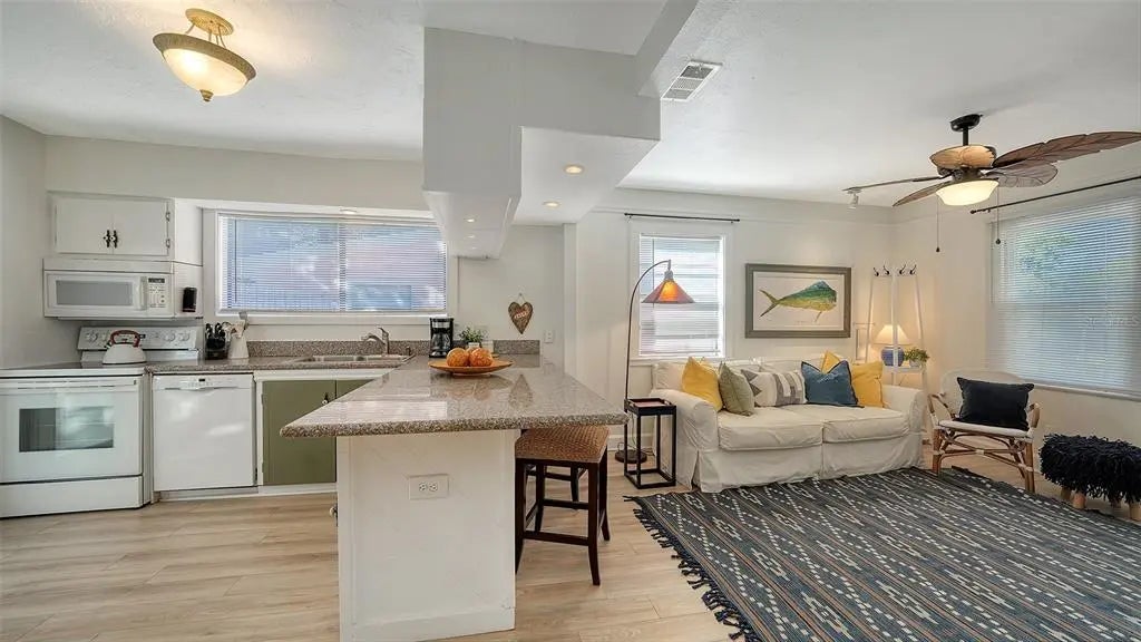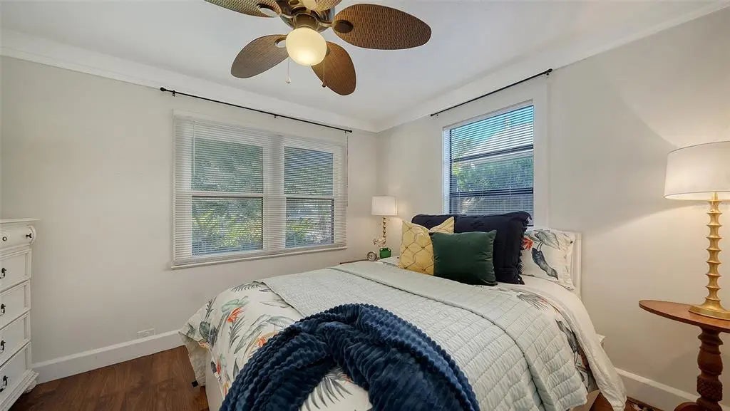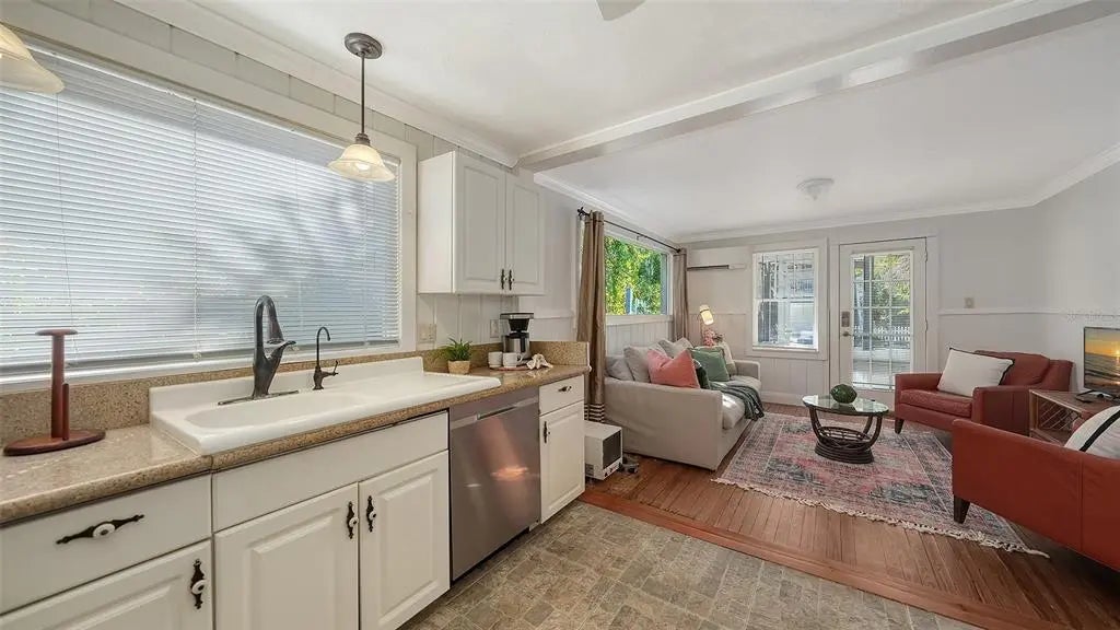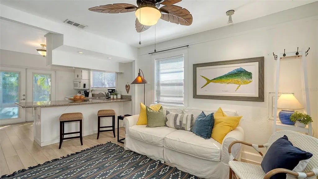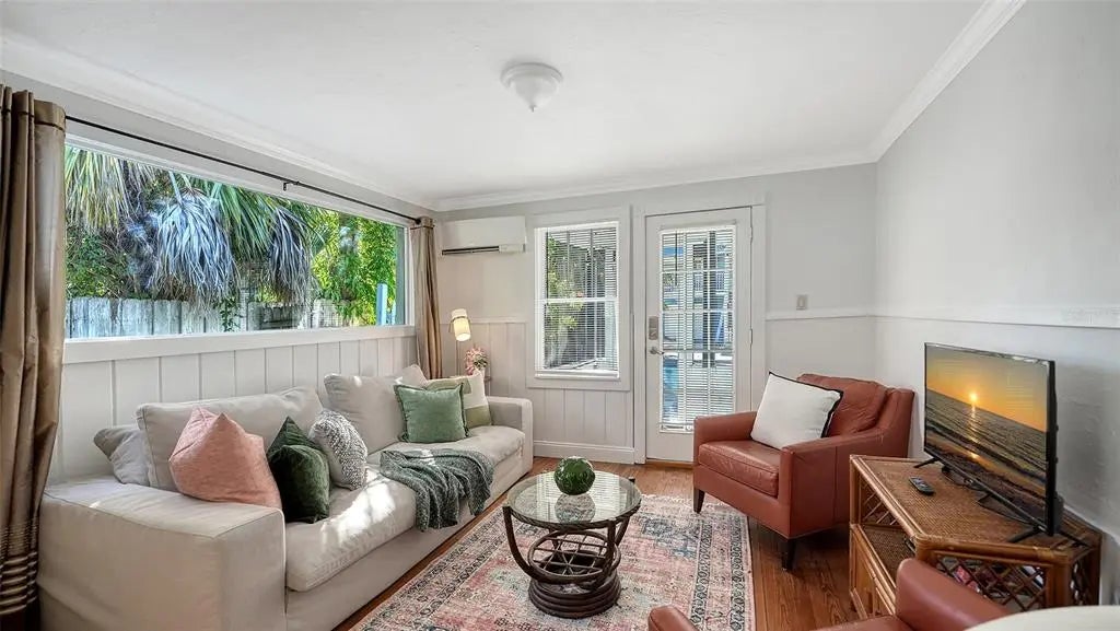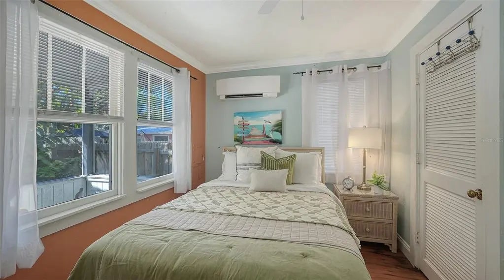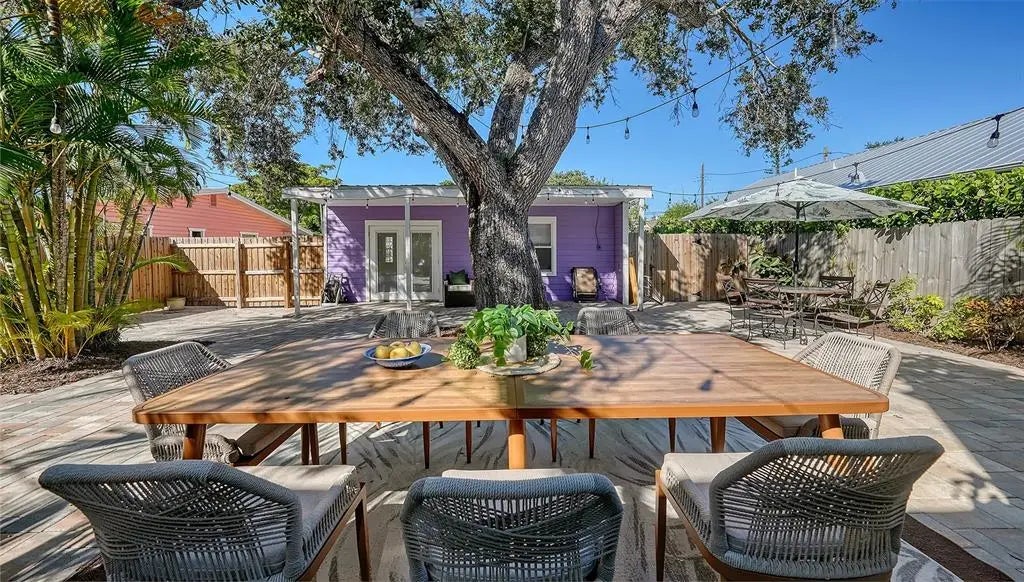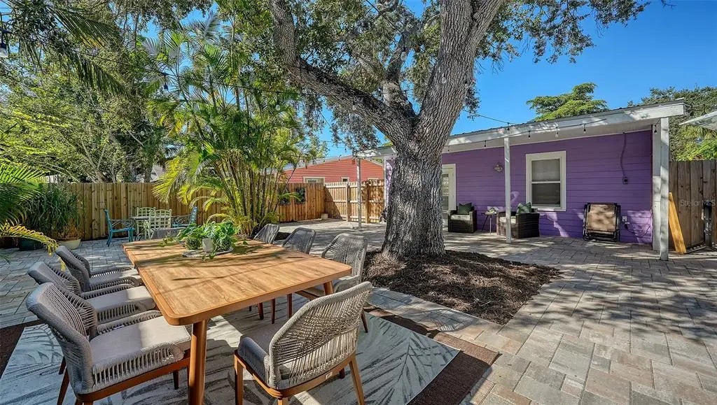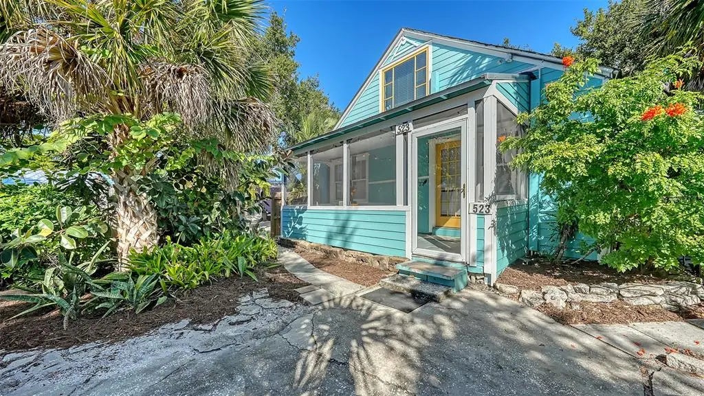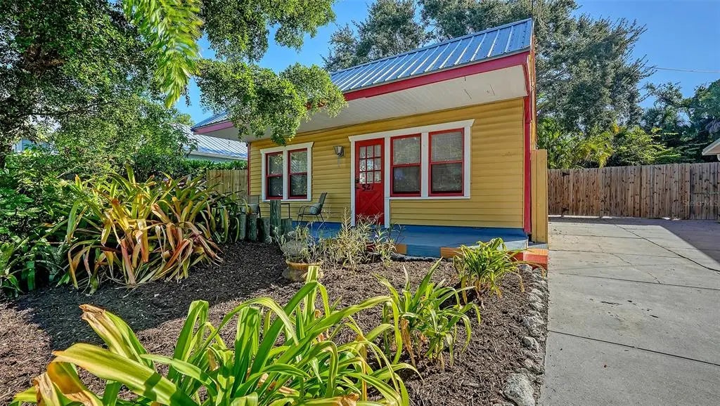 Picture-Perfect Laurel Park Opportunity! Located in one of Sarasota’s most beloved historic neighborhoods, THIS RARE OFFERING OFFERS NOT ONE - BUT TWO CHARMING HISTORIC COTTAGES set on lush, tree-shaded grounds. Just steps to everything downtown Sarasota and the bayfront - this is Laurel Park living at its best. Step inside the Gold Cottage, where classic bungalow charm meets an open, inviting design. With 2 bedrooms and 1 bath, this light-filled retreat flows seamlessly to a spacious tropical courtyard—a truly special gathering space for morning coffee or evenings under the stars. The Turquoise Cottage welcomes you through its screened front porch, perfect for a good book or card games with friends. Inside, you’ll find 3 bedrooms and 2.5 baths - plus a flexible floor plan with private upstairs access—ideal for guests or rental income opportunities. Together, the two cottages offer a total of 5 bedrooms and 3.5 baths and are offered turnkey furnished, ready to enjoy with family, friends, or tenants. This property offers a unique mix of old and new - with updated baths, appliances and AC's - in a setting that has a vintage charm of yesteryear and tree-lined streets with a true neighborhood vibe. Enjoy the convenience of natural gas, wood floors, open kitchens and separate laundry. A peaceful and tropical lot in this historic neighborhood is a rare find. No HOA, not in a flood zone, no storm damage plus the city rental rules support flexibility - making this property ideal as an investment, full-time home, or seasonal retreat. Live in one cottage and rent the other—or create a multi-generational sanctuary just steps from everything Sarasota has to offer. Walk to shopping, dining, weekly farmers market and cultural events. A great Florida lifestyle!