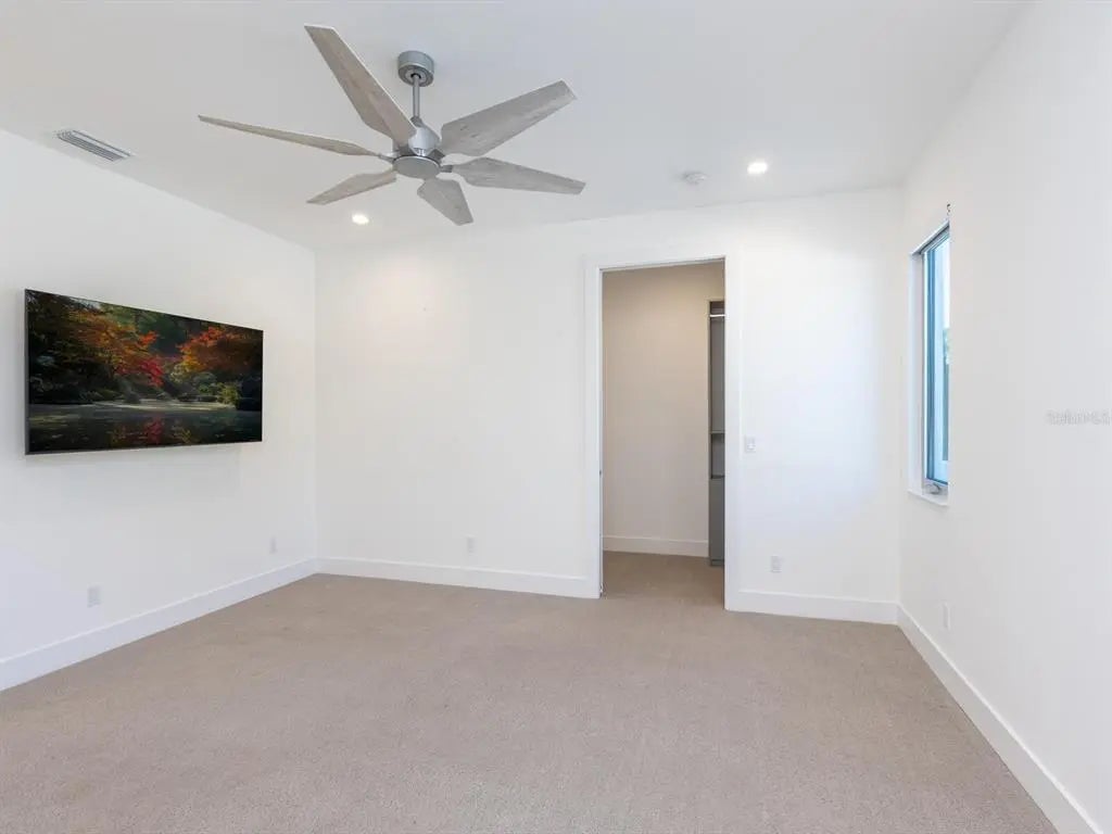 One or more photo(s) has been virtually staged. Meticulously designed by award-winning DSDG Architects and built to the highest standards by top rated Voigt Brothers Construction in 2021. This MODERN home is visually striking. Discreetly located behind a walled quarter-acre homesite with motorized security gate, gorgeous West of Trail residence is highlighted by a flowing contemporary floor plan of 3,744 sq. ft. and introduces the perfect combination of plush materials, clean lines, and gracious beauty. As if taken directly from the pages of Architectural Digest, this 4-bedroom plus flex room, 5-bath residence is loaded with personality, charm and character. Architectural concrete walking pads beckon entry into the home’s light-filled interior where every detail evokes a feeling of peace and harmony. The fabulous living room is crowned with a 13-foot floor-to-ceiling accent wall featuring an electric fireplace flanked by floating solid oak shelves and undermount display lighting. An expansive wall of sliders opens to an outstanding indoor-outdoor space with a Palm Springs style terrace, 12-foot cypress ceiling detail, a professional cooking station, and a heated saltwater Pebble Tec pool/spa. The artful night lighting accents the tropical landscape designed to provide a welcoming ambiance of lush tranquility. A sleek chef’s kitchen is centered on a dramatic 14-foot double thick island with waterfall edge and seating space for 6, ultra-premium Dacor appliances, solid wood custom cabinetry, a wine cooler, and plenty of prep room and storage. The formal dining room is complemented with 10-foot windows overlooking the pool terrace and is separated from the kitchen by an accent wall with LED lighting. The first-floor primary suite is private and inviting. It features access to the terrace, 2 walk-in custom closets, and a lavish bath with floating vanities, designer pendant chandelier, huge walk-in shower with multiple body jets, and freestanding soaking tub. The second floor features a loft office, a second primary suite, additional bedroom, and a large flex room with full bath, walk in closet, wet bar, surround sound and an AV closet making it ideal for a media room. The owners spared no expense equipping this home with additional bonuses such as wide plank French oak floors, 20 kw Kohler generator with automatic transfer switch, concrete surfaces with non-slip coating, utility room with sink, two-car garage, tankless water heater, two 15 SEER A/C systems, irrigation and security systems, commercial grade membrane roof, impact windows, doors and an impact garage door -- all connected to a Control 4 automated smart home system which also controls lighting, sound, TVs, window shades, cameras and the pool. The address just off South Osprey Avenue offers close proximity to downtown Sarasota’s world-class shopping and dining, cultural offerings, sugar sand beaches, and top-ranked school district. 2624 Mulberry Terrace is a bold statement of casual elegance, stylish sophistication and supreme artistry where every detail has been expertly created to deliver the best life of luxury on Florida’s cultural coast.The evening hush settles over West of Trail as soft lighting flickers to life across a Palm Springs–style courtyard. You step through the private gates and along sculpted concrete pads, past a tropical pool that glows like glass at dusk—an instant hint that this home was designed for both celebrations and quiet moments.