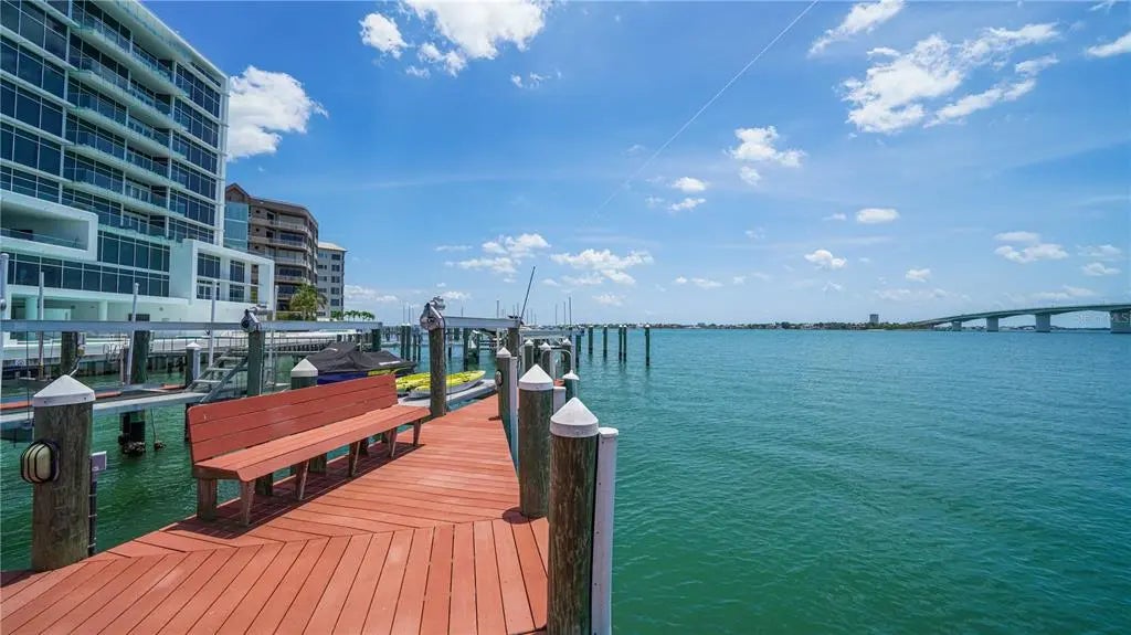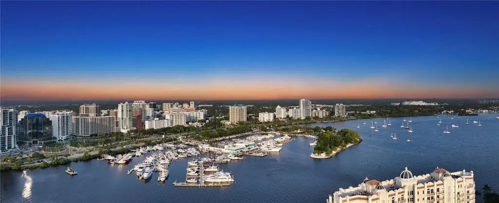 Occupying the entire eighth floor at Majestic Bay Sarasota, this rare three-bedroom plus media room residence defines the art of modern coastal living. Here, panoramic Sarasota Bay views, refined interiors, and the vibrancy of downtown come together in effortless harmony. Set within the exclusive Golden Gate Point neighborhood—just moments from downtown Sarasota, Bayfront Park, and St. Armands Circle—this home spans over 3,000 square feet of light-filled luxury. Walls of glass showcase sweeping vistas of the John Ringling Bridge, the shimmering bay, and Sarasota’s evolving skyline. Every room offers a front-row seat to the city’s natural beauty—from sunrise over the water to golden evening sunsets and the twinkle of downtown lights. A secure elevator opens directly into the residence foyer, where travertine floors, high ceilings, and soft neutral finishes set a tone of understated elegance. The open-concept great room connects seamlessly to the dining area and a bay-view terrace, creating an ideal layout for both relaxed living and sophisticated entertaining. The chef’s kitchen is appointed with rich wood cabinetry, granite countertops, a Wolf gas range, Sub-Zero refrigeration, built-in ovens, and an extended breakfast bar. A cozy morning nook with built-in workspace and east-facing windows captures gentle daylight—perfect for coffee and quiet starts. The primary suite anchors the northwest corner, offering privacy and stunning water views. French doors open to a private bayfront terrace, while the spacious walk-in closet and spa-inspired bath—with dual vanities, soaking tub, and glass-enclosed shower—create a true retreat. Two additional guest suites, each with en-suite baths, provide inviting accommodations, and a separate media room or office offers flexibility for today’s lifestyle. North- and south-facing terraces embrace Sarasota’s indoor-outdoor spirit, framing ever-changing bay and skyline views. The residence includes a private two-car garage and a deep-water dock with a 10,000-lb lift—ideal for exploring the Intracoastal Waterway or venturing into the Gulf of Mexico. Majestic Bay is an intimate, ten-residence community celebrated for its privacy and boutique lifestyle. Amenities include a heated bayfront pool and spa, fitness center, club room, and outdoor kitchen for complete peace of mind. Outside your door, experience the best of downtown Sarasota living: stroll to the Marina Jack waterfront, Selby Gardens, and The Bay Park, or bike across the Ringling Bridge to St. Armands Circle for shopping, dining, and beach days on Lido Key. The Van Wezel Performing Arts Hall, Sarasota Opera House, and world-class galleries are minutes away, while Siesta Key Beach and the Gulf’s turquoise waters await just beyond. This full-floor Majestic Bay residence offers an unparalleled combination of space, privacy, and panoramic views—a rare opportunity to own one of Sarasota’s most distinctive addresses and live immersed in the beauty of the bay.