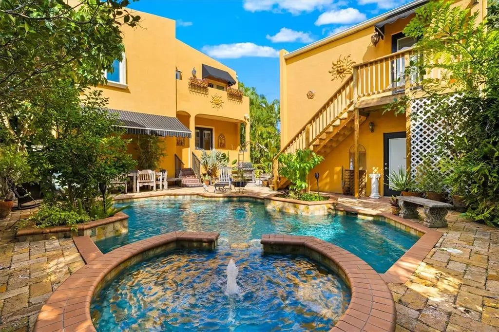 Welcome to your own private Spanish-Mediterranean-inspired sanctuary, perfectly nestled in the heart of Sarasota’s historical Laurel Park. This rare exquisitely updated 4-bedroom, 3.5-bath residence blends timeless charm with modern sophistication offering a dynamic combination of style, comfort, and versatility. This private gated home offers a separate guest or in-law suite with a full kitchen and en-suite bath ideal for extended family, visitors, or potential rental income. Step outside into a lush, resort-style backyard, where tropical landscaping frames a shimmering turquoise saltwater pool/spa and a retractable awning to enjoy your personal oasis for relaxing afternoons or elegant entertaining. Inside, the main home's fully renovated first level boasts European white oak flooring, a thoughtfully designed chef’s kitchen, and bespoke finishes throughout. Unique touches include a custom ventilated cat retreat tucked playfully beneath the staircase, blending charm and creativity. The newly crafted white oak staircase leads to the upper level, where the white oak floors continue and lime-washed plaster walls create a soft, elevated ambiance that’s both serene and stylish. All of this, just steps away from the vibrant lifestyle of downtown Sarasota; including Burns Court, Selby Gardens, and an abundance of dining, arts, and cultural attractions. There is also a kayak launch around the corner, so you're able to venture out via Hudson Bayou to the bay or to the neighborhood's "pocket park" on Laurel Street. With unmatched walkability and a one-of-a-kind design, this home offers a rare opportunity to live beautifully in one of Sarasota’s most beloved neighborhoods.