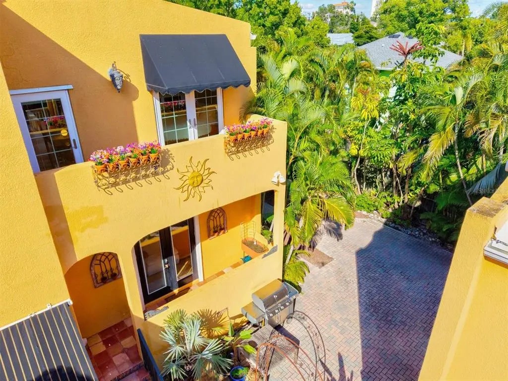 - Exterior FeaturesAwning(s), Balcony, French Doors, Irrigation System, Lighting, Rain Gutters, Storage