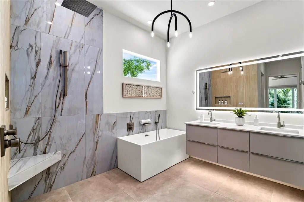 Experience modern Sarasota living at its finest in this stunning five-bedroom, five-and-a-half-bath residence located in the heart of Arlington Park. Designed for style and comfort, this exceptional home offers a bright, open floor plan and a seamless indoor-outdoor lifestyle just minutes from Siesta Key, downtown Sarasota, and St. Armands Circle. The gourmet kitchen serves as the centerpiece of the home with a spacious island, premium appliances, and contemporary finishes ideal for both daily living and entertaining. The adjoining living and dining areas feature clean lines and abundant natural light, creating an inviting flow throughout the main level. Each bedroom suite provides generous space and privacy, including four king suites and a flexible fifth suite with a queen and twin bunk—perfect for guests or multi-generational living. Designer bathrooms with custom tilework and upscale fixtures deliver a spa-inspired experience. The outdoor spaces elevate the property even further with a heated pool and spa, summer kitchen, fireplace, and putting green. A rooftop deck expands the living area with panoramic views and room for sunset gatherings. Additional highlights include a game room, multiple patios, and ample parking. Set within one of Sarasota’s most convenient neighborhoods, this home combines luxury design, entertainment amenities, and proximity to everything the Gulf Coast has to offer—an ideal choice for a full-time residence, vacation escape, or investment opportunity.