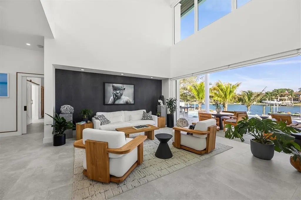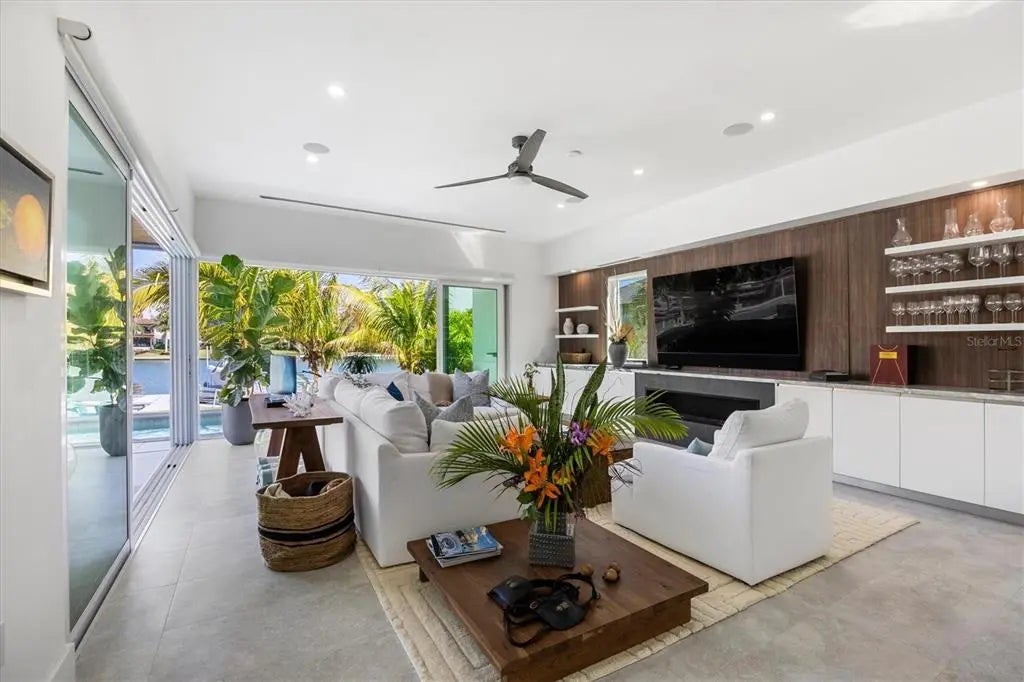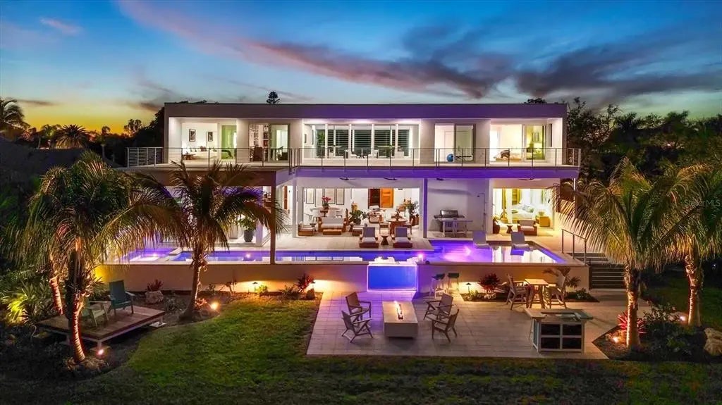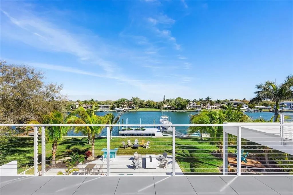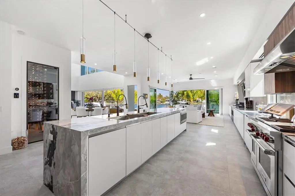 Anchored in one of Sarasota’s most sought-after deepwater settings, 3631 San Remo Terrace is a modern sanctuary where clean lines meet the warmth of natural textures, creating a home that feels both timeless and alive. Completed in 2021 by award-winning designer Stephen Chung and thoughtfully refined by the current owner, the residence reflects resilience and intention, standing strong through recent storms while maintaining an atmosphere of calm and connection to its surroundings. Updated in fall of 2025, the home now features new railings and window trim to complement the wood flooring, linear drains in the paver pool deck, and a fully equipped outdoor kitchen, enhancing its functionality and contemporary appeal. Within 4,750 square feet of living space, complemented by nearly 3,000 square feet of terraces, pool, and patio, every detail is designed to balance sophistication with ease. The kitchen centers the home with a sculptural marble island and professional-grade Sub-Zero and Wolf appliances, accented by soft lighting and sunlight that filters through walls of glass. The great room’s stone fireplace, open shelving, and expansive sliders invite an effortless flow to the outdoors, while the adjoining dining space rises with two-story ceilings and a dramatic wall of windows. A temperature-controlled wine room with space for 1,800 bottles adds both artistry and function. The primary suite is its own retreat, defined by quiet luxury and seamless connections to nature. Sliders open to a private courtyard with spa and sauna on one side and the pool terrace on the other. Inside, illuminated details, a bespoke walk-in closet, and a spa-like bath with an expansive vanity and glass-enclosed shower emphasize comfort and serenity. The second floor carries the same sense of air and light, with three guest suites, one currently a gym, each opening to a full-length terrace overlooking the water. A loft like office, a custom laundry room with a beverage cooler and sink, and an open gallery walkway further showcase the home’s thoughtful design. Outside, the saltwater pool with a glass wall becomes a focal point for relaxation, while the expansive dock offers a 20,000-pound lift, two low-profile lifts, and a floating platform for kayaks and paddleboards—providing instant access to Sarasota Bay and Big Pass. Even the garage has been elevated, with epoxy floors, a BendPak lift for a fourth car, and custom storage for boating and fishing gear. Every system has been considered, including a fully integrated smart-home platform with programmable lighting and shades, whole-house audio, Apple TVs, a generator, and strong WiFi indoors and out. San Remo Estates is at the core of Sarasota, just before the north bridge to Siesta Key, and minutes to Downtown Sarasota and Southside Village. 3631 San Remo Terrace is a unique property, where every detail speaks to the timelessness and practicality of the Sarasota School of Architecture.