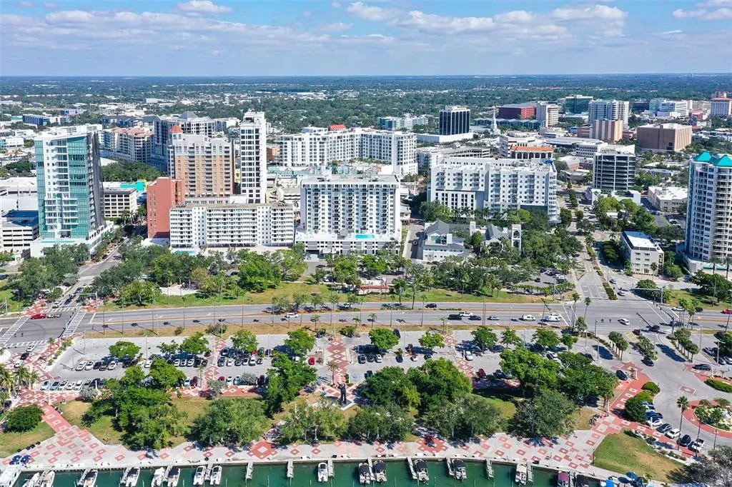 As of January 1, HOA IS REDUCED $268/MONTH TO $1022.46!! Experience the best of downtown living in this beautifully renovated 1 bedroom, TWO full bath, 965 sq ft condo offering scenic water views and an unbeatable location. Just steps from shopping, dining, theaters, art galleries, Marina Jack, Bayfront Park, Marie Selby Botanical Gardens and the fabulous Saturday Farmers Market, this residence combines luxury, comfort, and convenience. The open floor plan features a modern kitchen, stylish finishes, and impact-rated windows and sliders for peace of mind. Oversized Bedroom features a well designed walk-in closet with workspace. Enjoy your morning coffee or evening sunsets from the private balcony overlooking the bay and pool. The building offers resort-style amenities including a heated pool, outdoor grill area, fully equipped fitness center, yoga studio, and renovated club room. Additional conveniences include in-unit laundry, on-site management, maintenance staff, and concierge services. Pet Friendly! 2 pets allowed with no weight restriction. Recent building updates and ongoing enhancements ensure lasting value and appeal. Perfect for those seeking a vibrant downtown lifestyle with bayfront views. Don't miss this opportunity to own downtown for under $600,000!!