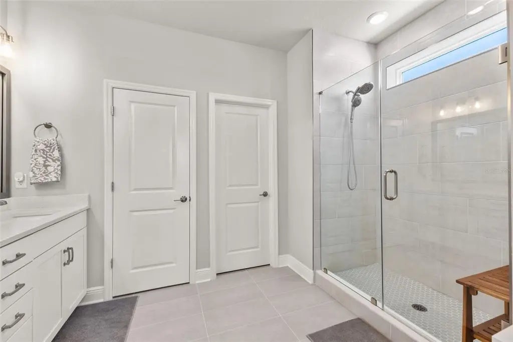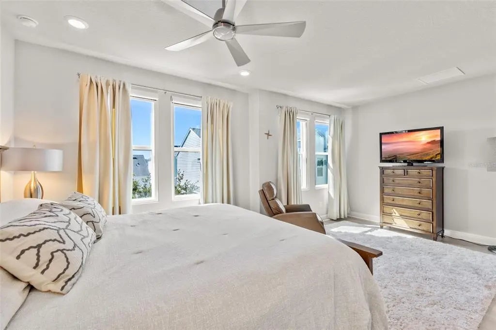 - Interior FeaturesHigh Ceilings, PrimaryBedroom Upstairs, Solid Surface Counters, Thermostat, Walk-In Closet(s), Window Treatments