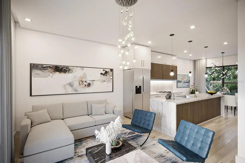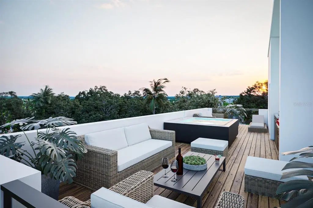 Visit the new furnished model next door at 2170 Fruitville Road. Open noon-3 p.m. on weekends or by appointment. Are you dreaming of the ideal Uptown location close to everything Sarasota, with its amazing arts and cultural district, culinary delights, proximity to the farmers market, the John Ringling Bridge and the new 53-acre public park right on Sarasota’s bayfront? Well, this is it! In the hot Uptown district, you will find Premier on Main, a redesigned, stunning contemporary boutique neighborhood offering just six unique contemporary townhomes in this building. This spacious, newly constructed residence offers 2,445 square feet of under-roof space including 1,850 air-conditioned square feet at the east end of Main Street. On your incredible rooftop deck, you can relax and lounge with an outdoor kitchen, optional grill and optional above-ground hot tub. On the garage level, you have a two-car garage, laundry closet, staircase and elevator and open space, ideal for a den or man cave! The staircase or elevator leads you upstairs to the main level of the four-level structure, where there is a spacious living room with expansive sliding doors that lead you onto a small terrace. Featuring contemporary designer finishes, high ceilings, plus a powder bath and chef’s kitchen with a stainless steel appliance package and huge entertaining island, along with a cozy dining room. The third level, or bedroom floor, offers two en-suite bedrooms and walk-in closet. Did we tell you about becoming a lounge lizard on your 374-square-foot entertainment rooftop deck, just the spot for a hot tub with views of the city and open air to enjoy the ideal Florida weather? This stunning contemporary design features designer-selected hard surface flooring, energy-efficient systems such as hurricane-rated ES impact windows and patio doors, recessed lighting, custom-contemporary European cabinetry with solid surface quartz countertops and under-cabinet lighting, high-efficiency HVAC system, plus all fire alarm and sprinkler systems. Contracts are being accepted today. Professionally managed homeowners association is in place, with low fees of just $394/month, and includes common area landscape maintenance, irrigation for landscape maintenance, private road maintenance, manager, liability insurance for the association. Don’t waste time and contact the agent for your private showing today!