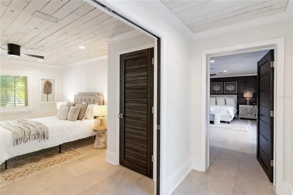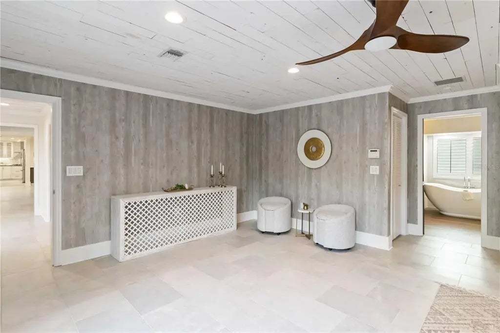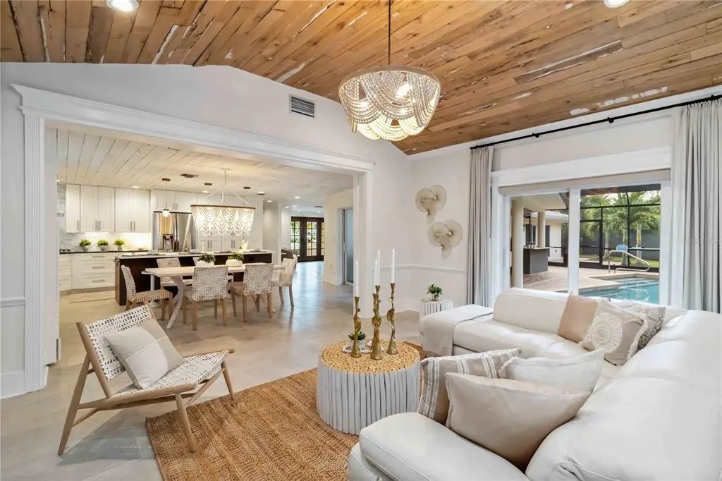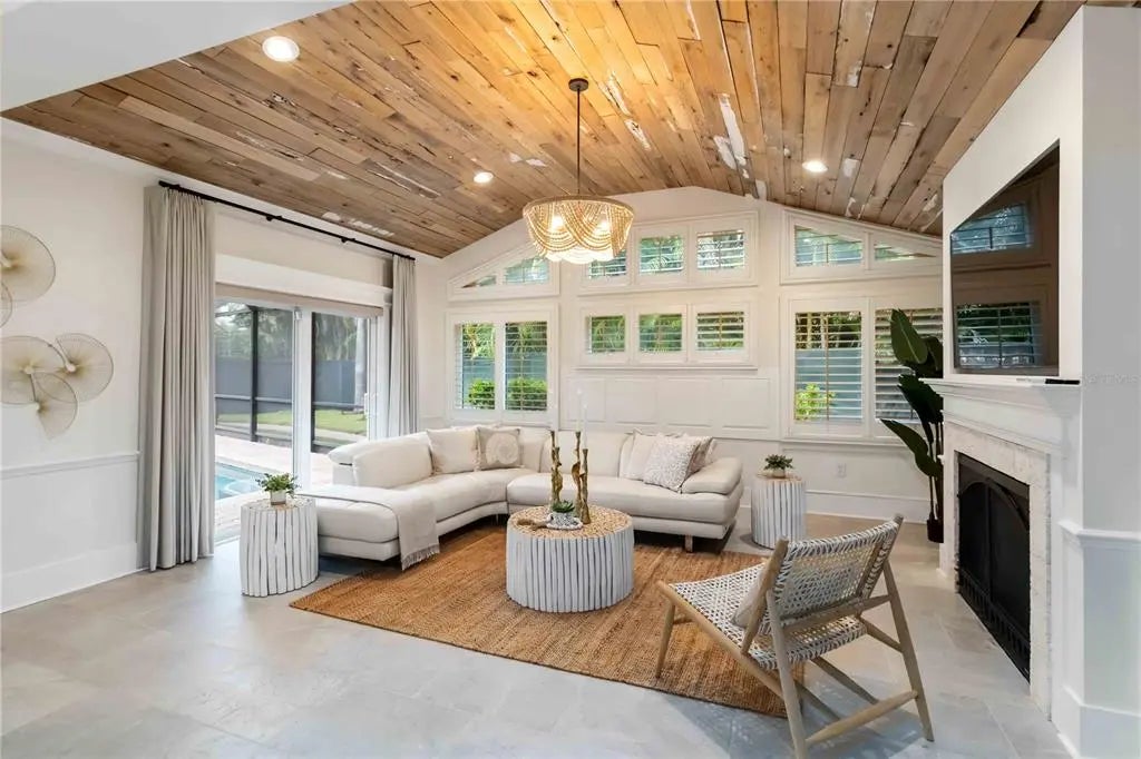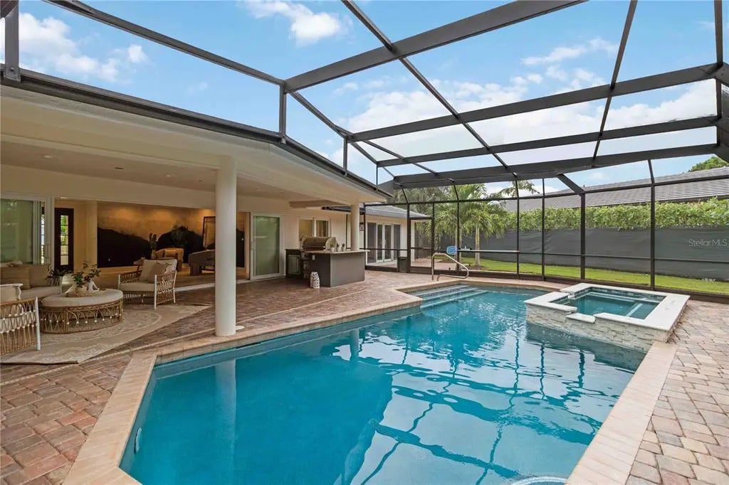 Discover this stunning 3-bedroom, 3-bathroom residence nestled on a coveted barrier island, where downtown Sarasota's sophistication meets the pristine shores of Lido Beach. This 3,482-square-foot sanctuary embraces warm modern design philosophy, creating an atmosphere where contemporary elegance dances with coastal charm. Step inside to find an expansive open floor plan that flows seamlessly, while multiple glass doors create a harmonious bridge between indoor luxury and outdoor paradise. The tropical lanai beckons with its sparkling pool, rejuvenating spa, and fully equipped outdoor kitchen—perfect for those who believe the best conversations happen under starlit skies. The generously proportioned primary suite serves as a private retreat, complete with a screened sitting area and dedicated outdoor space for morning coffee or evening contemplation. Dual walk-in closets ensure organization remains effortlessly stylish, while impact windows provide both security and unobstructed views of this island oasis. Thoughtful details abound, from Hunter Douglas treatments and plantation shutters to pristine tile work in the bathrooms. The finished garage, complete with floor coating and abundant cabinetry, proves that even utilitarian spaces can embrace sophistication. Bird Key's exclusive 250-acre community offers mature landscaping and rich historical significance among Sarasota's most prestigious neighborhoods. Residents enjoy proximity to Bird Key Park's water sports opportunities, while the nearby Bird Key Yacht Club provides marina services, dining, fitness facilities, and tennis courts. This is island living refined—where luxury meets lifestyle in perfect harmony.