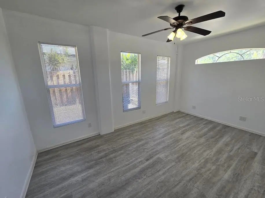 - Interior FeaturesCeiling Fan(s), Kitchen/Family Room Combo, Primary Bedroom Main Floor, Solid Surface Counters, Split Bedroom, Thermostat, Walk-In Closet(s), Window Treatments