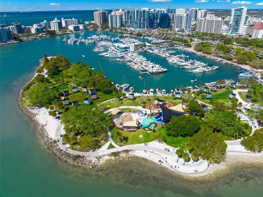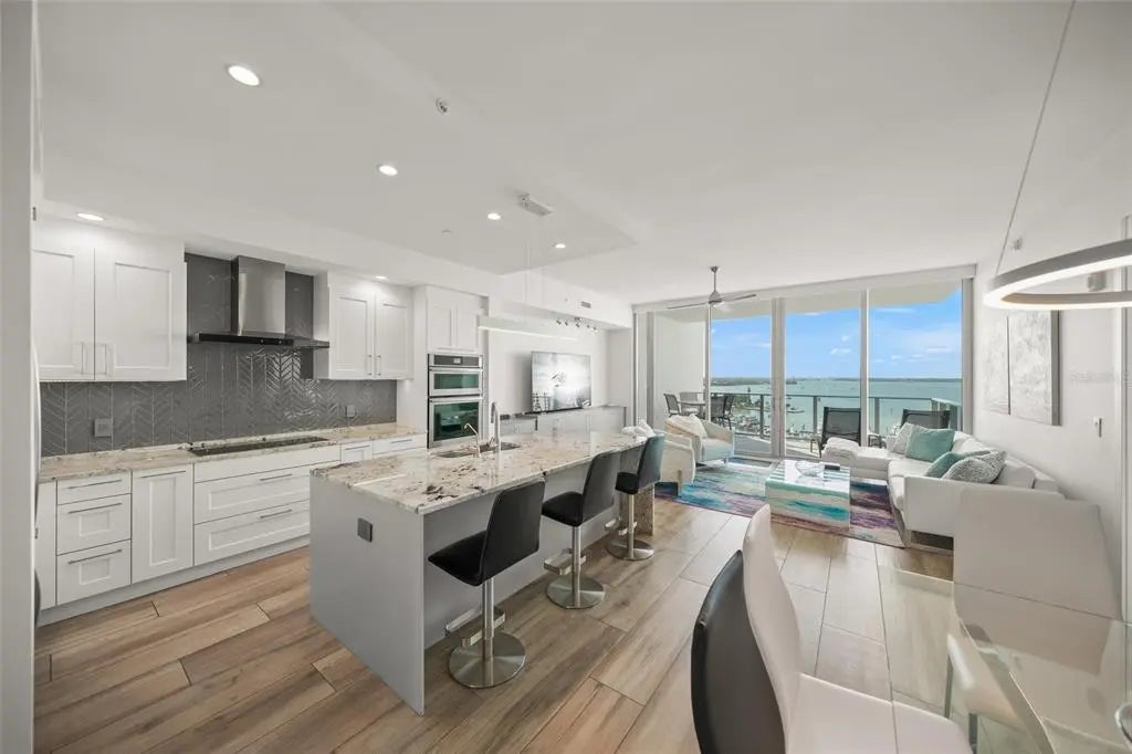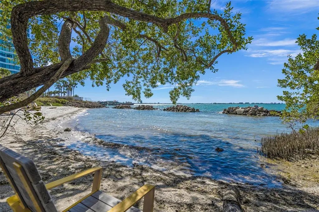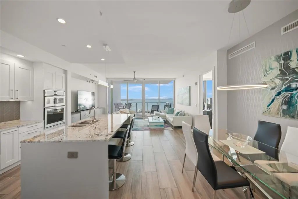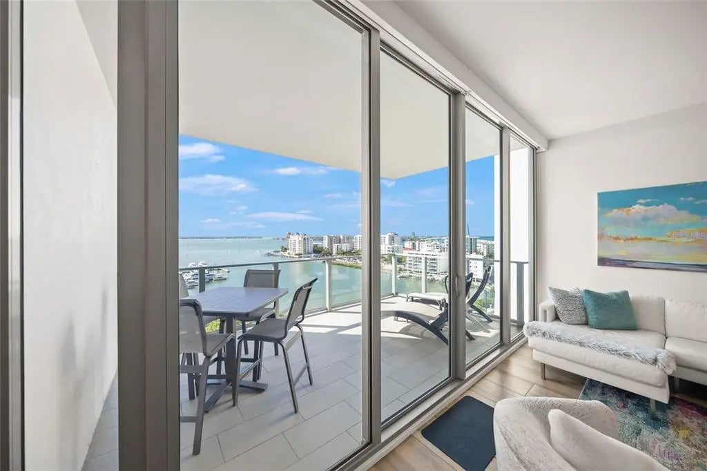 Elevated Bayfront Luxury in the Heart of Downtown Sarasota Experience the pinnacle of modern coastal living at The VUE, where timeless sophistication meets Sarasota’s vibrant urban energy. Perfectly positioned on the 10th floor, this residence offers unobstructed sweeping panoramic views of Sarasota Bay and Marina Jack in addition your gaze carries you out towards the Gulf providing the essence of waterfront luxury. Step off your private elevator into a dedicated foyer and custom-designed mudroom with built-in cabinetry and laundry. The moment you enter, 10-foot floor to ceiling glass reveals breathtaking water views and floods the open interior with natural light. 12 x 48 Italian wood-porcelain tile pours throughout the home providing seamless transition as you navigate throughout. This 1,770 sq. ft. home features 2 bedrooms and 2.5 baths with a den / office, designed for both grand entertaining and serene relaxation. The open living and dining areas flow seamlessly to a spacious private terrace, perfect for sunset cocktails overlooking the Bay. The chef’s kitchen showcases Crema Granite countertops with oyster-gray glass backsplash, premium JennAir stainless-steel appliances, induction cooktop, reverse osmosis system and custom shaker style cabinetry providing a perfect blend of style and functionality. The primary suite offers stunning Bay views, custom closets, and an en-suite bath with dual vanities and a walk-in shower. A split-bedroom layout provides privacy, while the den, office, or media room could provide a second dedicated living space. Additional highlights include motorized shades, two secure garage spaces, and climate-controlled storage. Residents of The VUE enjoy world-class amenities, including: • Resort-style pool and spa with private cabanas • Two rooftop dog parks with grooming station • Fitness center overlooking the pool • Residents’ club lounge, boardroom, and social spaces • Fire pit, dual gas grills, valet parking, and 24-hour concierge service Located steps from downtown Sarasota’s fine dining, boutiques, galleries, and theaters, and just minutes to Lido Beach and St. Armands Circle, this residence offers the ultimate blend of urban sophistication and coastal tranquility. Residence 1006 at The VUE delivers a lifestyle of elegance, convenience, and breathtaking beauty with luxury Sarasota living that is second to none.