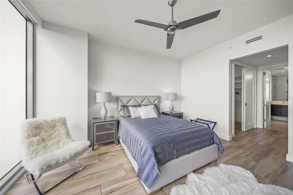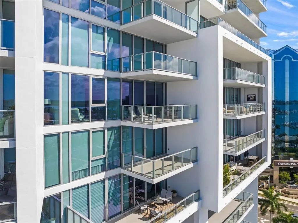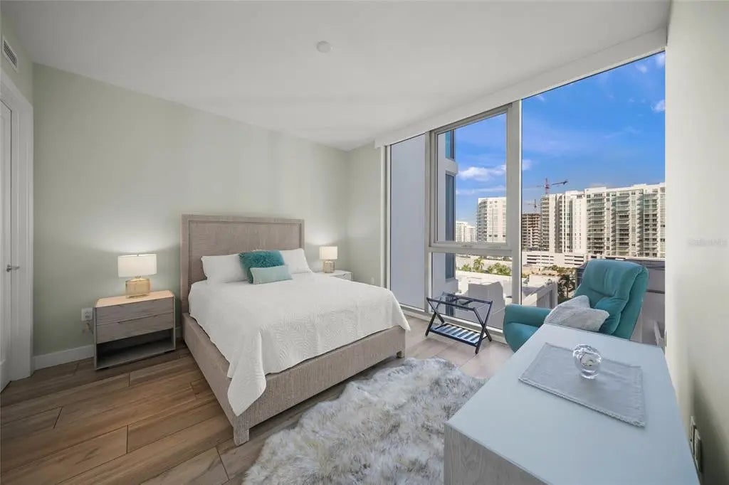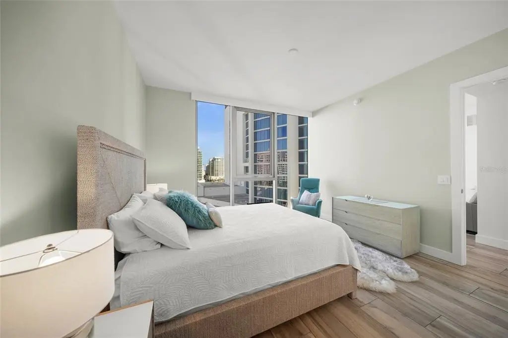 Elevated Bayfront Luxury in the Heart of Downtown Sarasota Experience the pinnacle of modern coastal living at The VUE, where timeless sophistication meets Sarasota’s vibrant urban energy. Perfectly positioned on the 10th floor, this residence offers unobstructed sweeping panoramic views of Sarasota Bay and Marina Jack in addition your gaze carries you out towards the Gulf providing the essence of waterfront luxury. Step off your private elevator into a dedicated foyer and custom-designed mudroom with built-in cabinetry and laundry. The moment you enter, 10-foot floor to ceiling glass reveals breathtaking water views and floods the open interior with natural light. 12 x 48 Italian wood-porcelain tile pours throughout the home providing seamless transition as you navigate throughout. This 1,770 sq. ft. home features 2 bedrooms and 2.5 baths with a den / office, designed for both grand entertaining and serene relaxation. The open living and dining areas flow seamlessly to a spacious private terrace, perfect for sunset cocktails overlooking the Bay. The chef’s kitchen showcases Crema Granite countertops with oyster-gray glass backsplash, premium JennAir stainless-steel appliances, induction cooktop, reverse osmosis system and custom shaker style cabinetry providing a perfect blend of style and functionality. The primary suite offers stunning Bay views, custom closets, and an en-suite bath with dual vanities and a walk-in shower. A split-bedroom layout provides privacy, while the den, office, or media room could provide a second dedicated living space. Additional highlights include motorized shades, two secure garage spaces, and climate-controlled storage. Residents of The VUE enjoy world-class amenities, including: • Resort-style pool and spa with private cabanas • Two rooftop dog parks with grooming station • Fitness center overlooking the pool • Residents’ club lounge, boardroom, and social spaces • Fire pit, dual gas grills, valet parking, and 24-hour concierge service Located steps from downtown Sarasota’s fine dining, boutiques, galleries, and theaters, and just minutes to Lido Beach and St. Armands Circle, this residence offers the ultimate blend of urban sophistication and coastal tranquility. Residence 1006 at The VUE delivers a lifestyle of elegance, convenience, and breathtaking beauty with luxury Sarasota living that is second to none.