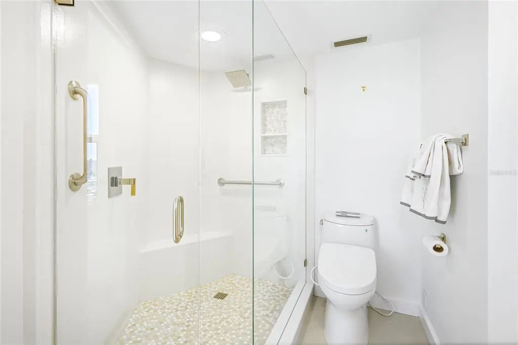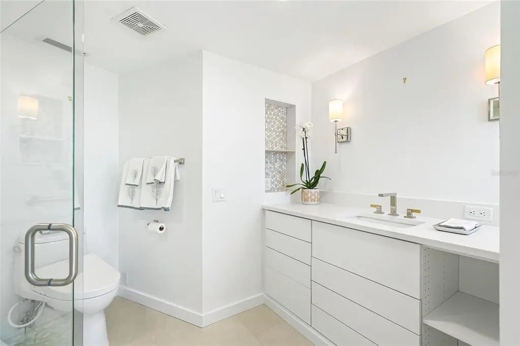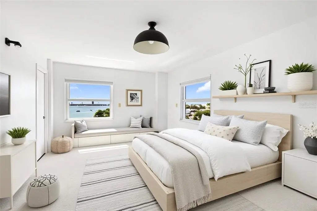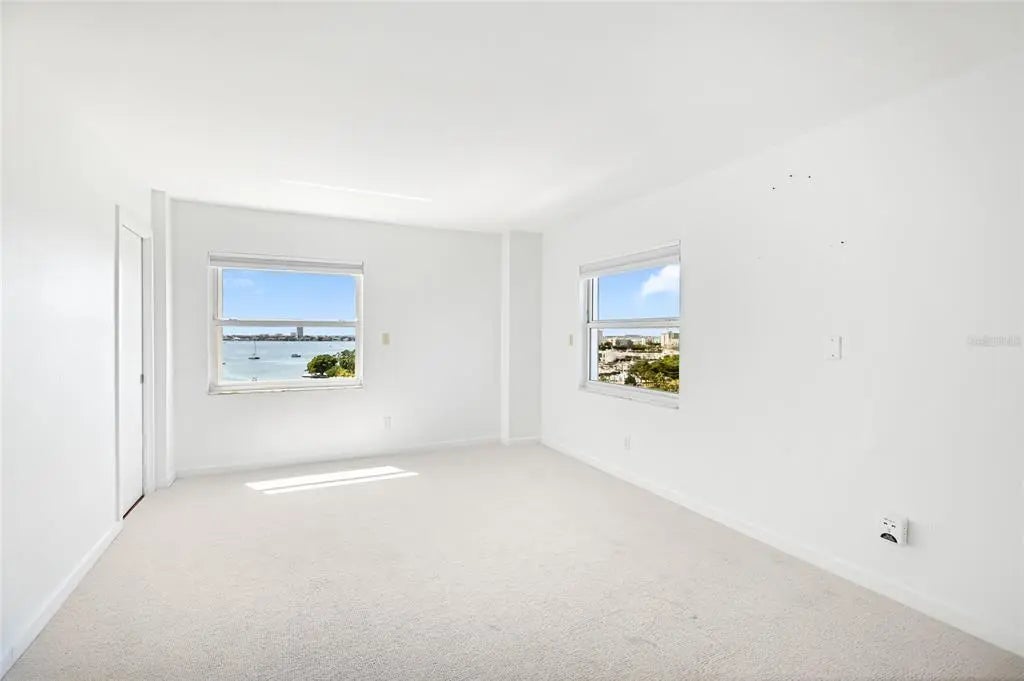 One or more photo(s) has been virtually staged. Welcome to Regency House, nestled in the heart of Sarasota on a serene, tree-lined street—ideally located between Gulfstream and Palm Avenue. Enjoy sweeping views of Sarasota Bay, breathtaking sunsets, and effortless walkability to the city’s premier dining, shopping, cultural attractions, and the bayfront. This beautifully updated 1,829 sq. ft. residence is designed with both style and function in mind, featuring a spacious split floor plan that maximizes privacy. The living room opens to spectacular north- and west-facing views, where sparkling city lights, Marina Jack’s Park, and Sarasota Bay create a stunning backdrop. Modern upgrades include new flooring, a fresh neutral palette, and a sleek kitchen with stainless LG appliances and a Bosch induction cooktop. With abundant storage and generous counter space, the kitchen is ready for everything from casual meals to lively entertaining. Each bedroom is a private retreat, offering gorgeous sunset views, updated baths, and abundant closet space—including brand-new $50,000 custom organizers. A versatile bonus/storage room provides additional flexibility for work, hobbies, or extra belongings. Resort-style amenities enhance everyday living: a heated pool, fitness center, stylish club room with catering kitchen, and the peace of mind of 24/7 concierge service. A full-size, in-residence washer and dryer make this home as practical as it is luxurious.Don’t miss this rare opportunity to experience vibrant downtown living with every convenience right at your doorstep.