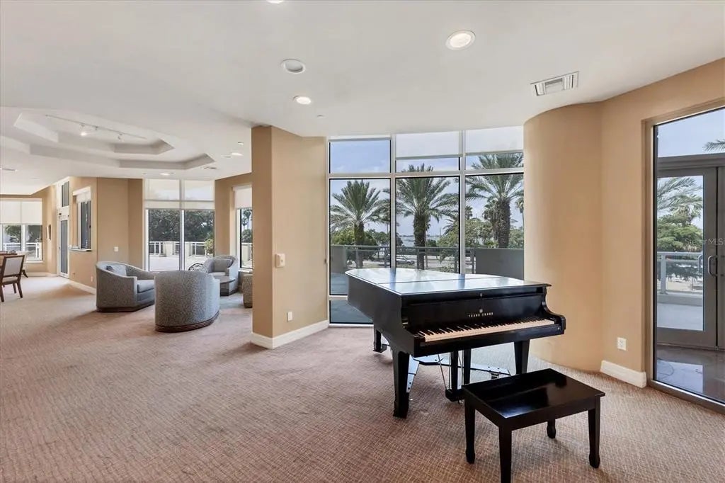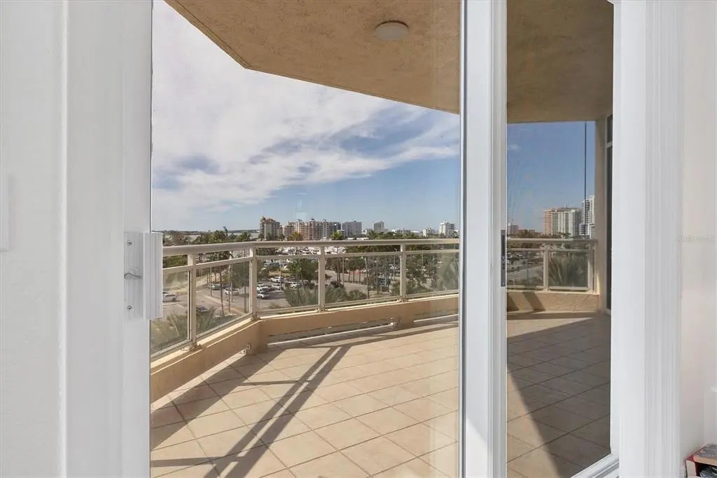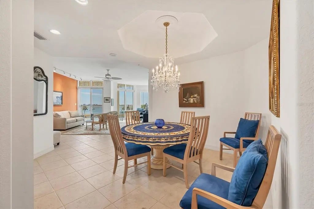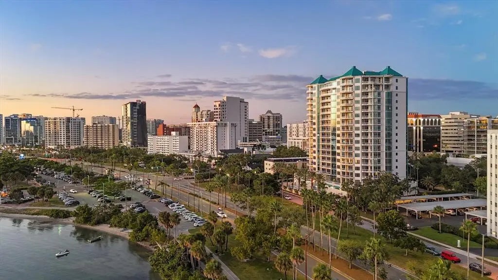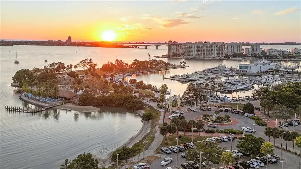 Set within Sarabande, one of downtown Sarasota’s most distinguished bayfront addresses, this third-floor residence blends comfort, functionality, and the opportunity for thoughtful modernization. The elevator opens directly outside the front door, leading into a spacious layout designed to capture Sarasota’s most breathtaking sunsets and sweeping views across Sarasota Bay. Inside, the great room is bright and inviting, with sliders opening to a private terrace and transom windows that frame the bay and beyond. The kitchen features solid-surface countertops, white cabinetry, and a generous eat-in nook, creating a bright and practical space for everyday living or casual entertaining. The primary suite offers two walk-in closets and an en-suite bath with a walk-in shower and vanity area, while the guest bedroom, with floor-to-ceiling windows and plantation shutters and a connecting Jack-and-Jill bathroom, ensures privacy and comfort. A den with French doors provides flexibility for an office or media space. Tile flooring flows through the main living areas, complemented by carpet in the bedrooms and den. The laundry room includes cabinetry and a utility closet for added convenience. The residence has been exceptionally maintained and offers a clean, livable foundation for a new owner to personalize. Beyond its walls, this home’s appeal lies in its setting within one of Sarasota’s premier luxury towers, steps from downtown dining, cultural venues, and the waterfront Bayfront Park. Sarabande’s reputation for prestige, full amenity suite including guest suites, and location makes this residence an extraordinary opportunity to enjoy Sarasota’s coastal city lifestyle, enhanced by a front-row seat to its most unforgettable sunsets.